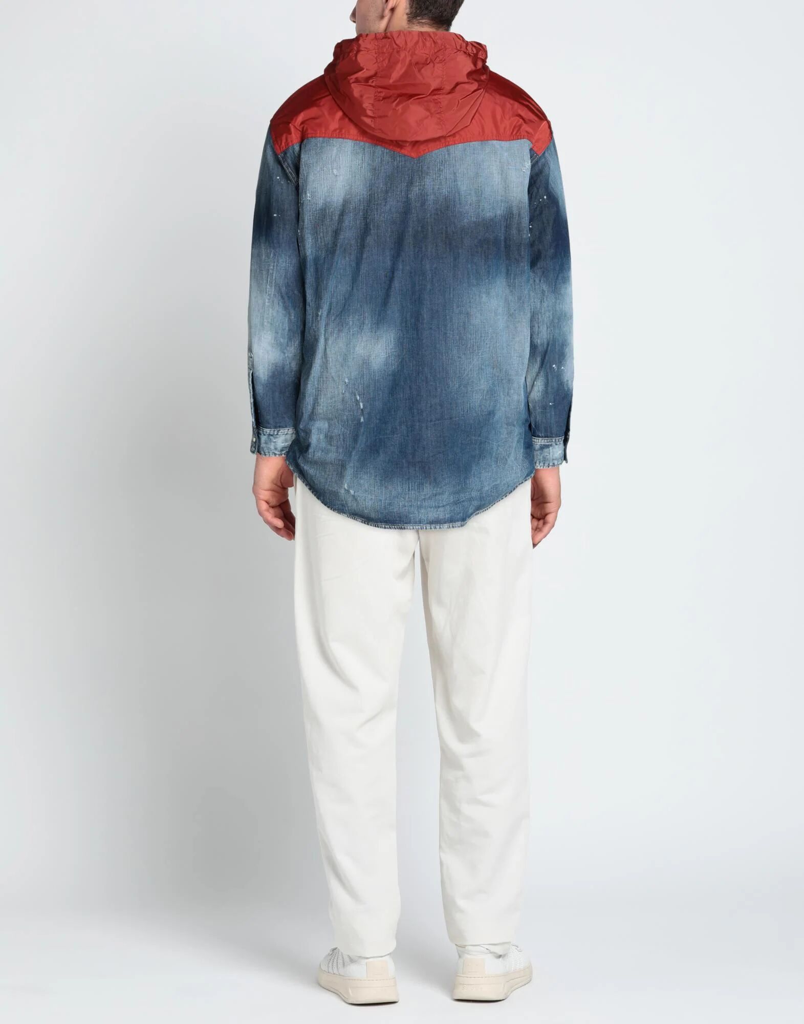 Деним, ракушка, эффект пятна, логотип бренда, двухцветный, средняя стирка, капюшон, длинные рукава, внутренняя часть из плюшевой ткани, застежки на кнопки, два нагрудных кармана, эластичный, верхняя рубашка