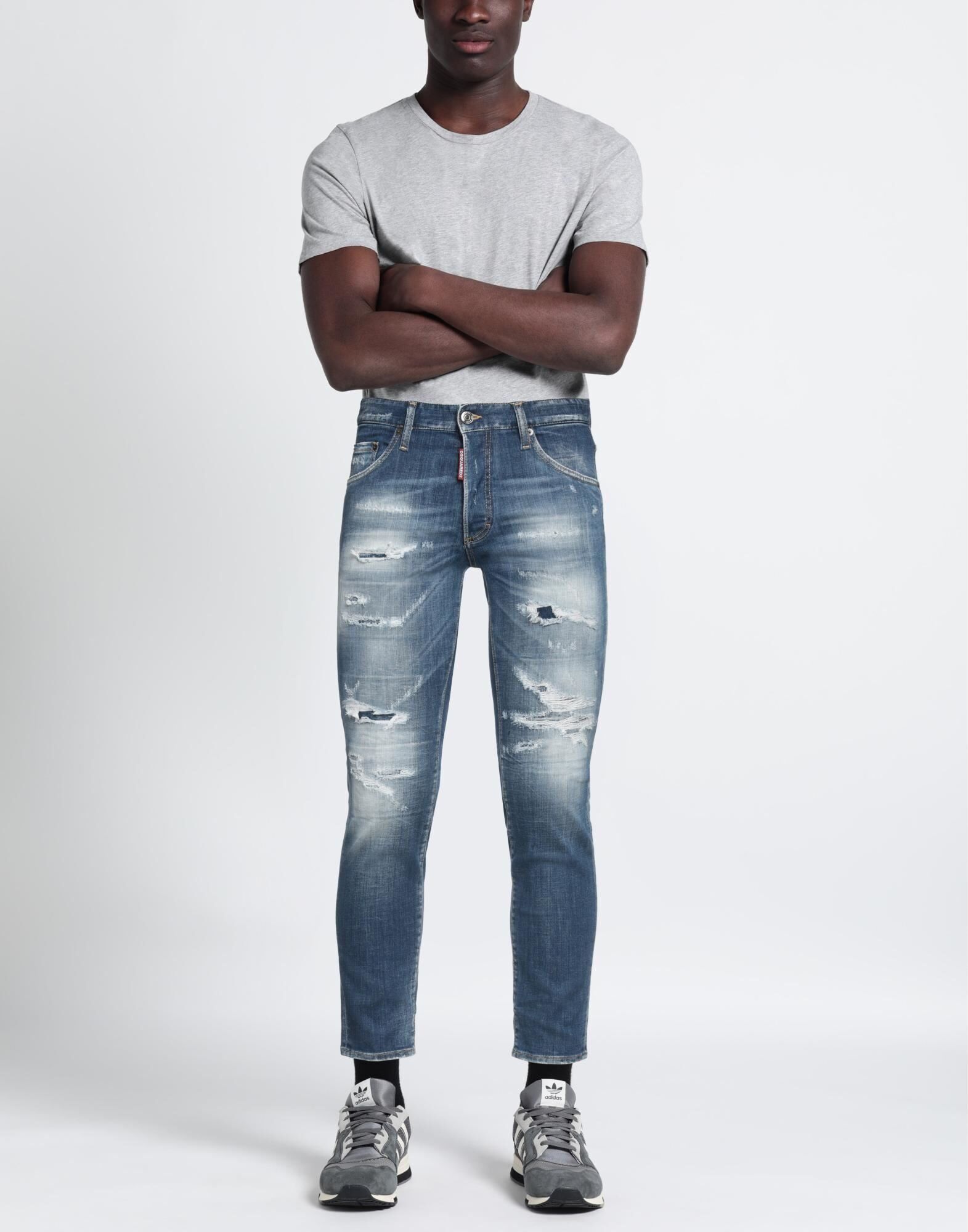 Деним, выцветший, логотип бренда, однотонный, средняя стирка, средняя посадка, зауженные штанины, узкие брюки, застежка на пуговицы, пять карманов, эластичный, облегающая модель