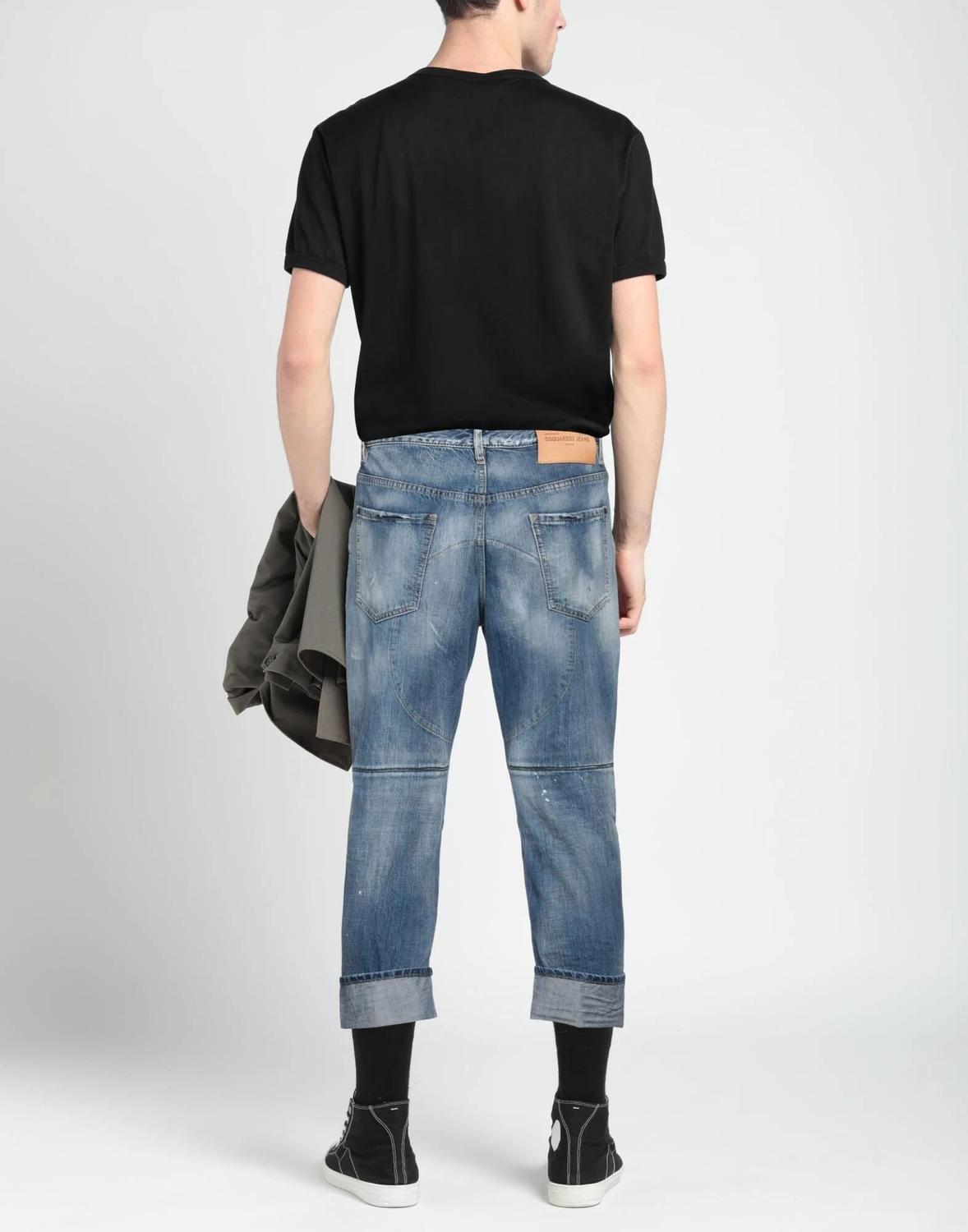Деним, логотип бренда, однотонный, средняя стирка, высокая талия, прямой крой, стандартный крой, застежка на пуговицы, манжеты по низу, множество карманов, модель прямого кроя