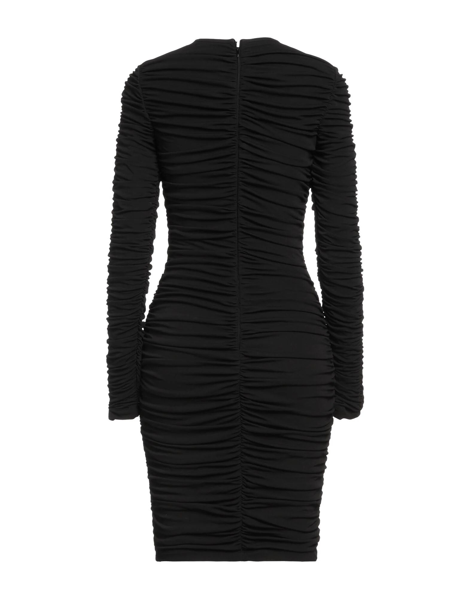 Джерси, оборки, однотонный цвет, круглый воротник, длинные рукава, полностью на подкладке, застежка-молния, фасон «карандаш», маленький размер