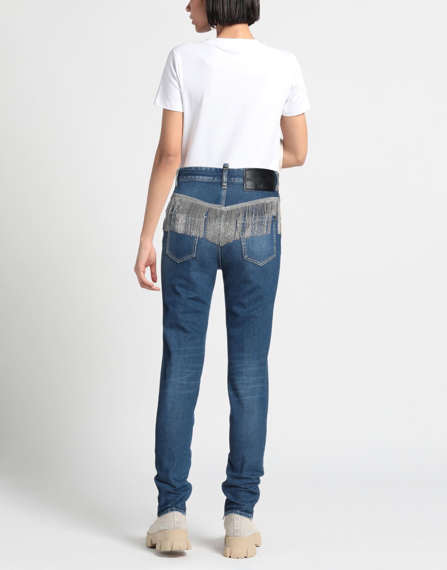 Узкие джинсы, деним, однотонный цвет с аппликациями, бахрома, логотип бренда, средняя стирка, высокая талия, облегающий крой, застежка на пуговицы, застежка на молнию, множество карманов, содержит нетекстильные части животного происхождения