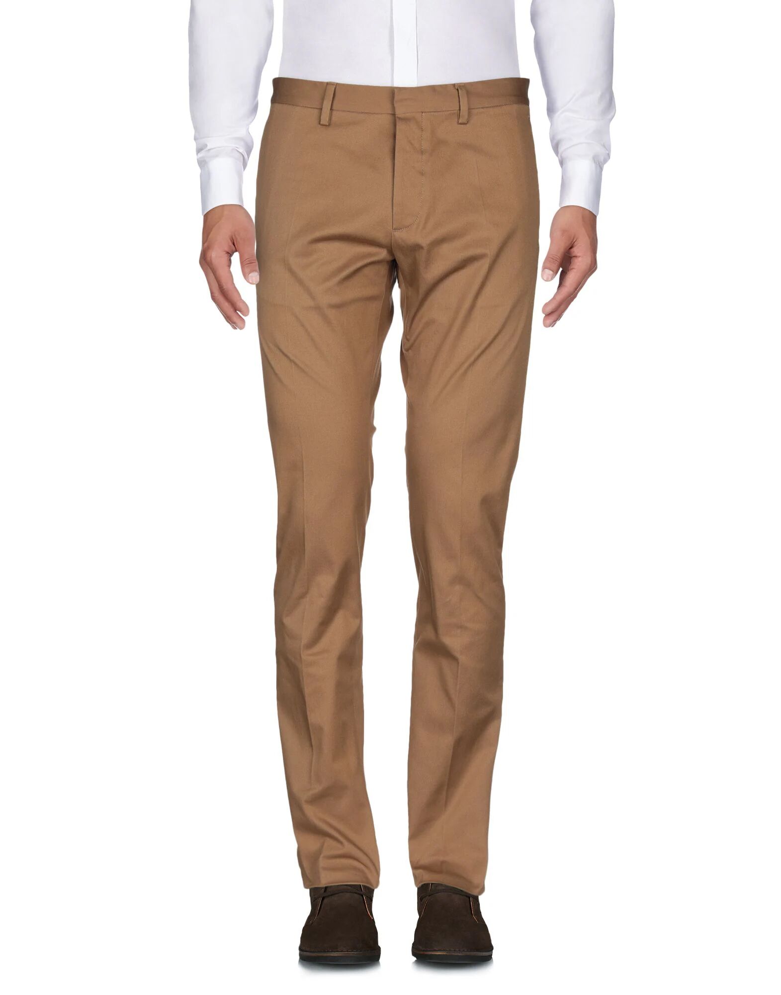 Твил, логотип, однотонный цвет, средняя посадка, классический крой, зауженные штанины, застежка на пуговицы, множество карманов, содержит нетекстильные части животного происхождения, эластичный