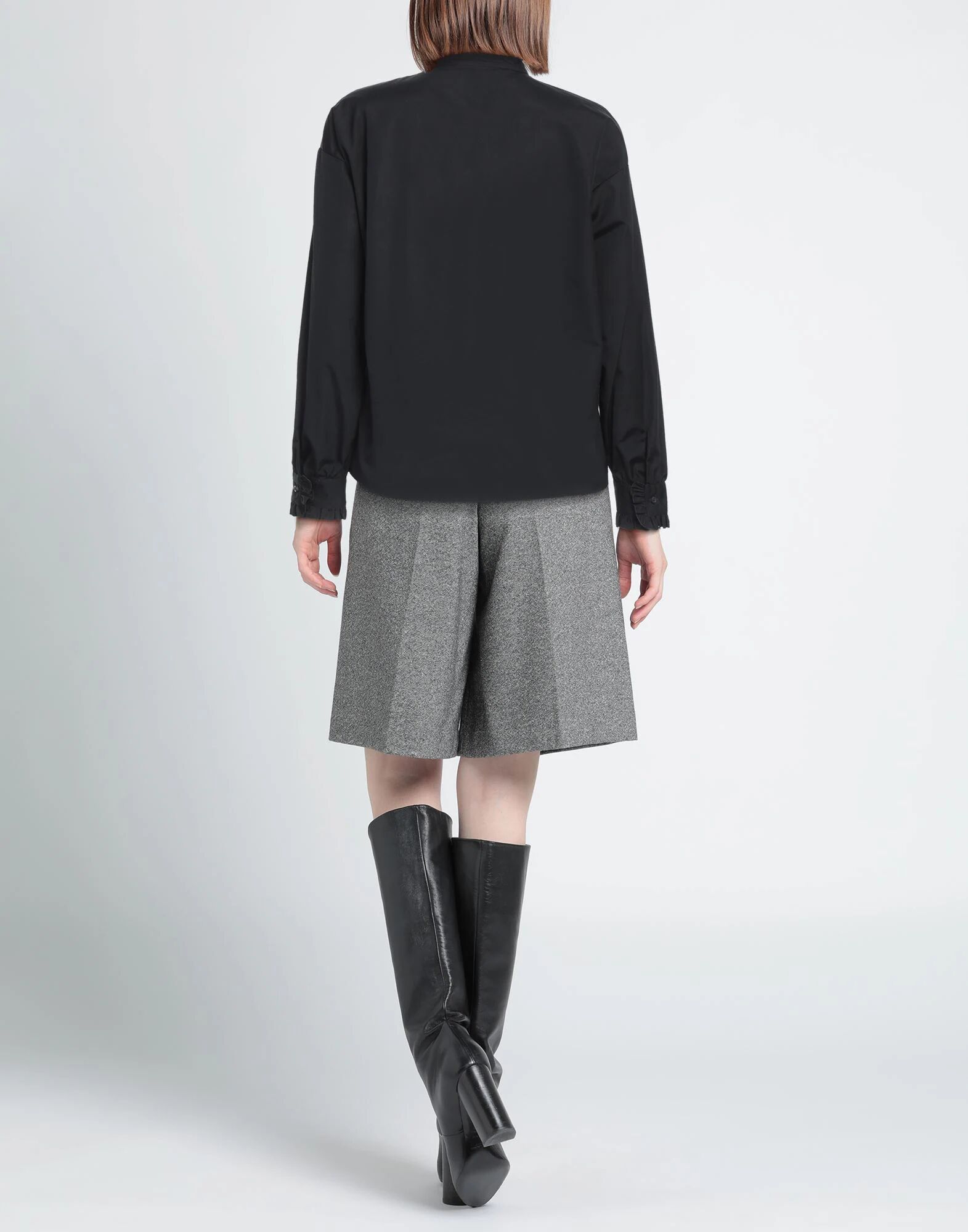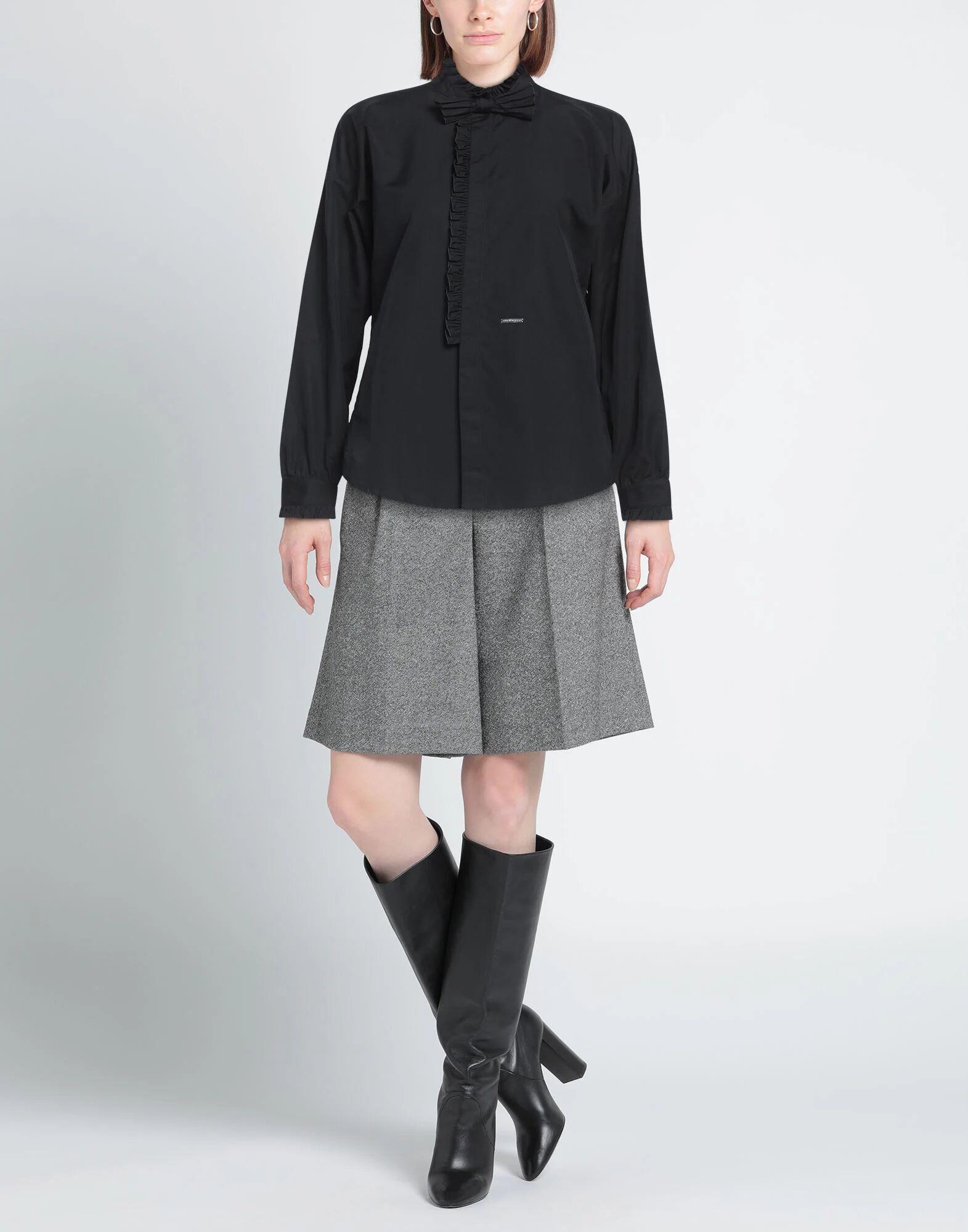 Тканый, с бантом, однотонный, воротник-стойка, длинные рукава, ручная стирка, не сушить в стиральной машине, не отбеливать, рубашка со сборками
