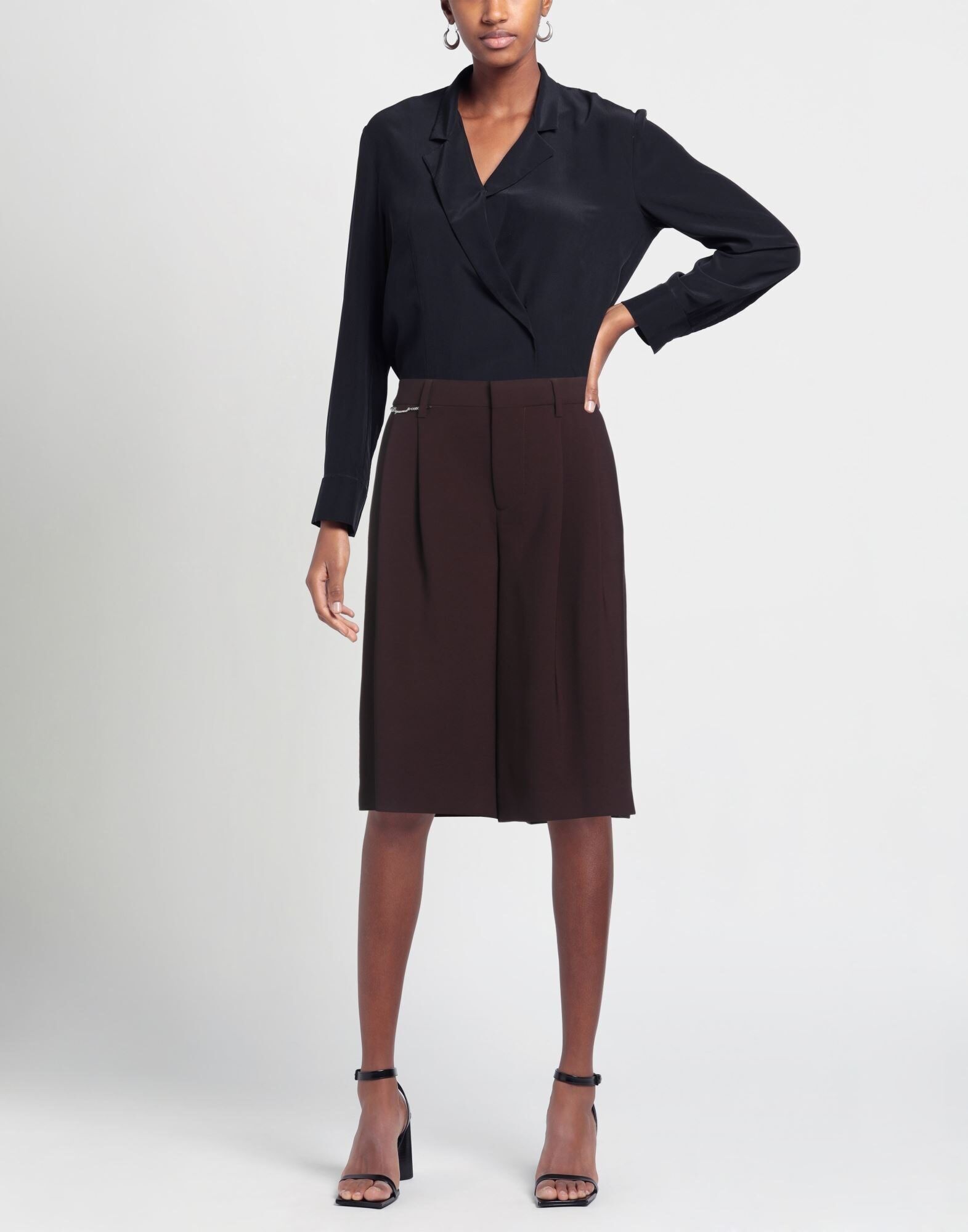 Креп, логотип бренда, металлические аппликации, однотонный цвет с аппликациями, высокая талия, шлевки для ремня, широкие штанины, классический крой, застежка на крючки и петли, застежка на пуговицы, множество карманов, карман на пуговицах, содержит нетекстильные части животного происхождения, сшитый на заказ