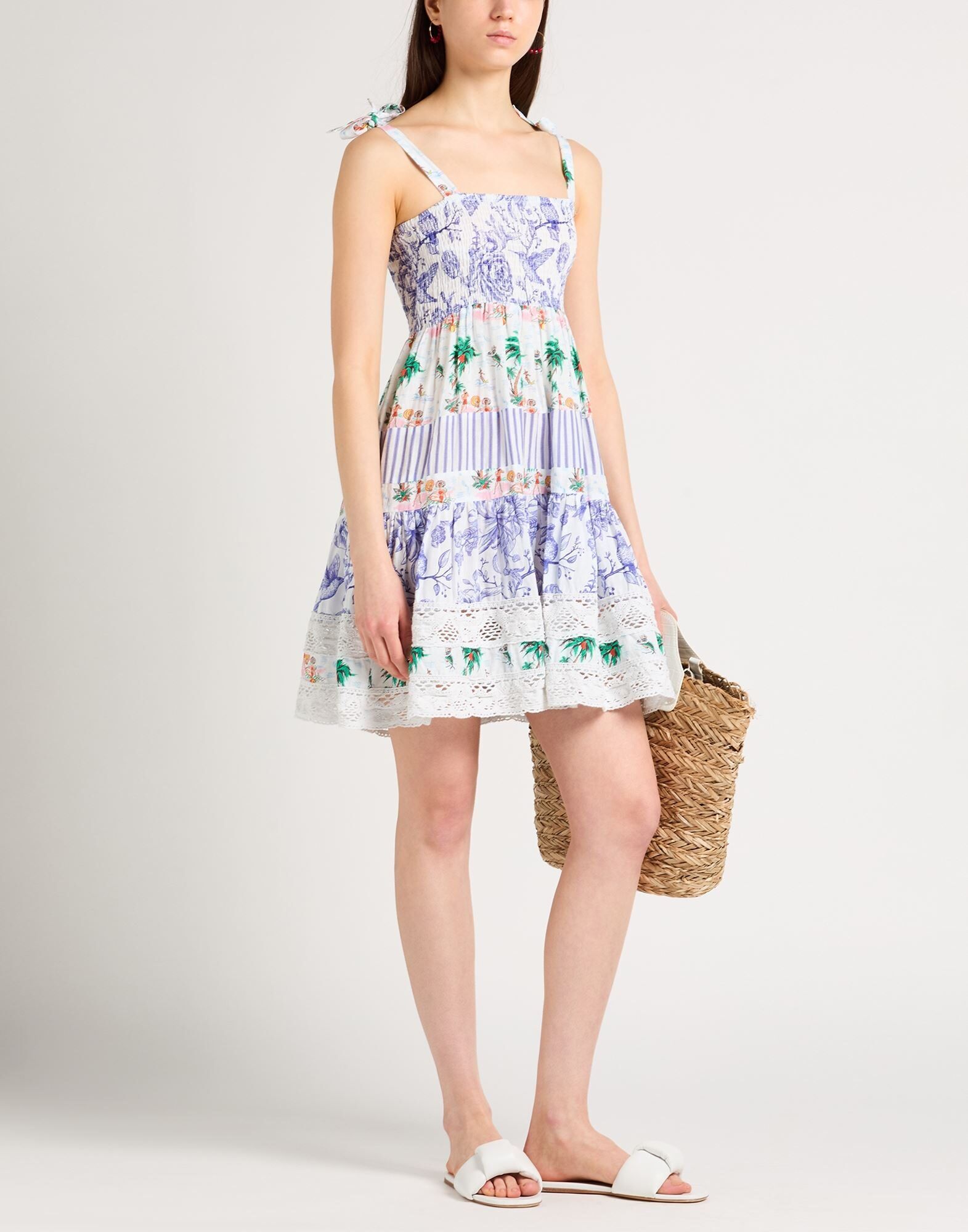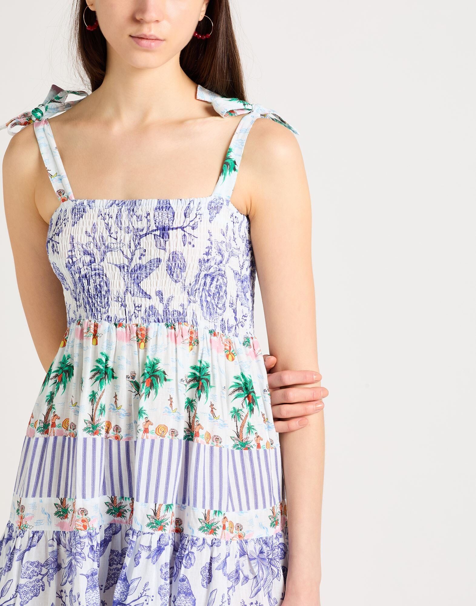Расклешенное платье, лен, гавайский узор, кружевная отделка, присборенное, квадратный вырез, без рукавов, без подкладки, ручная стирка или химчистка, не отбеливать, не сушить в стиральной машине