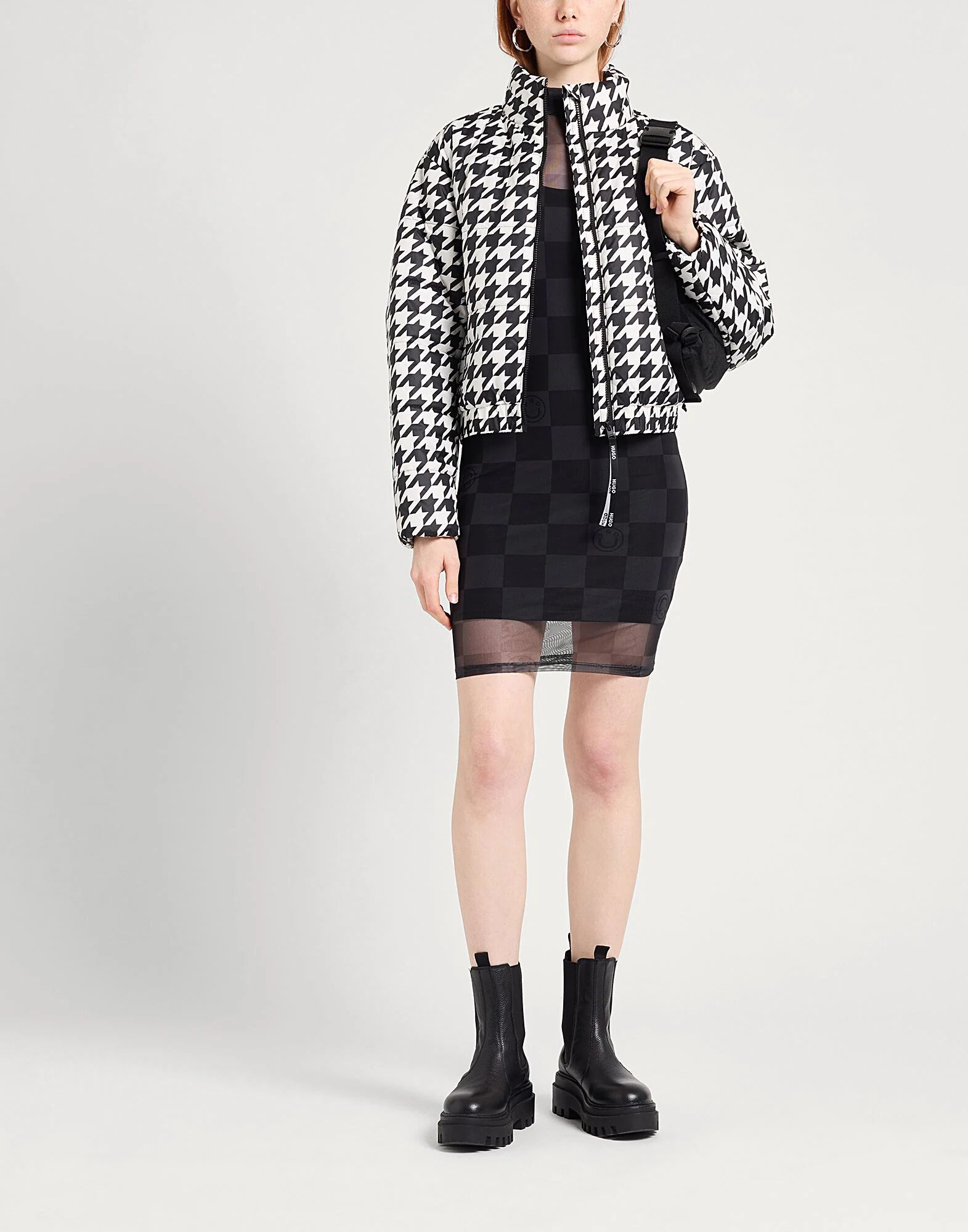 Куртка-стеганая, оболочка, стеганая, узор «гусиная лапка», логотип бренда, водолазка, однобортная, длинные рукава, эластичные манжеты, синтетический наполнитель, застежка-молния, карманы на молнии, эластичный подол, сухая чистка, не отбеливать, не сушить в стиральной машине, не гладить