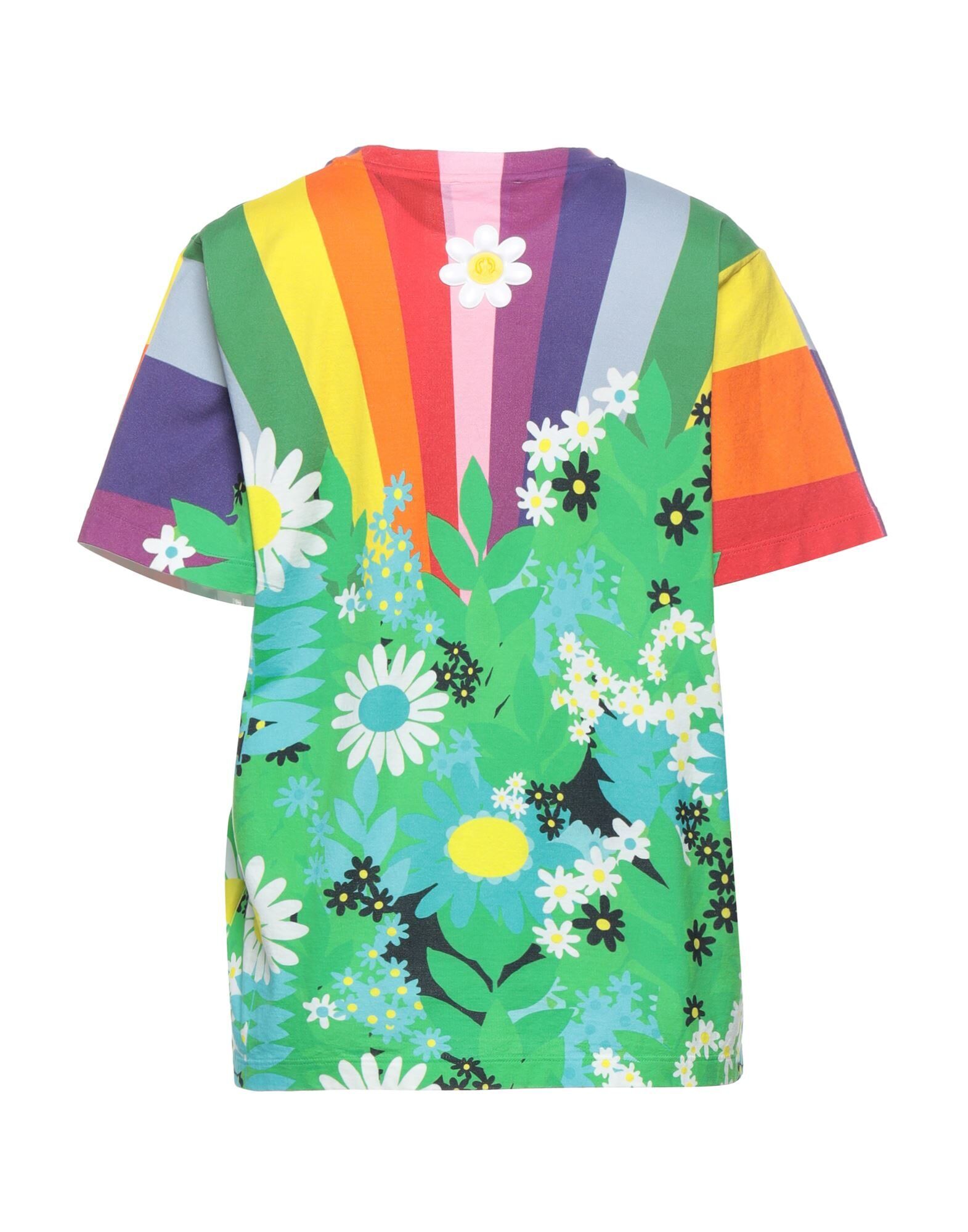 Футболка с принтом, трикотаж, цветочный принт, декорированная, логотип бренда, круглый вырез горловины, короткие рукава