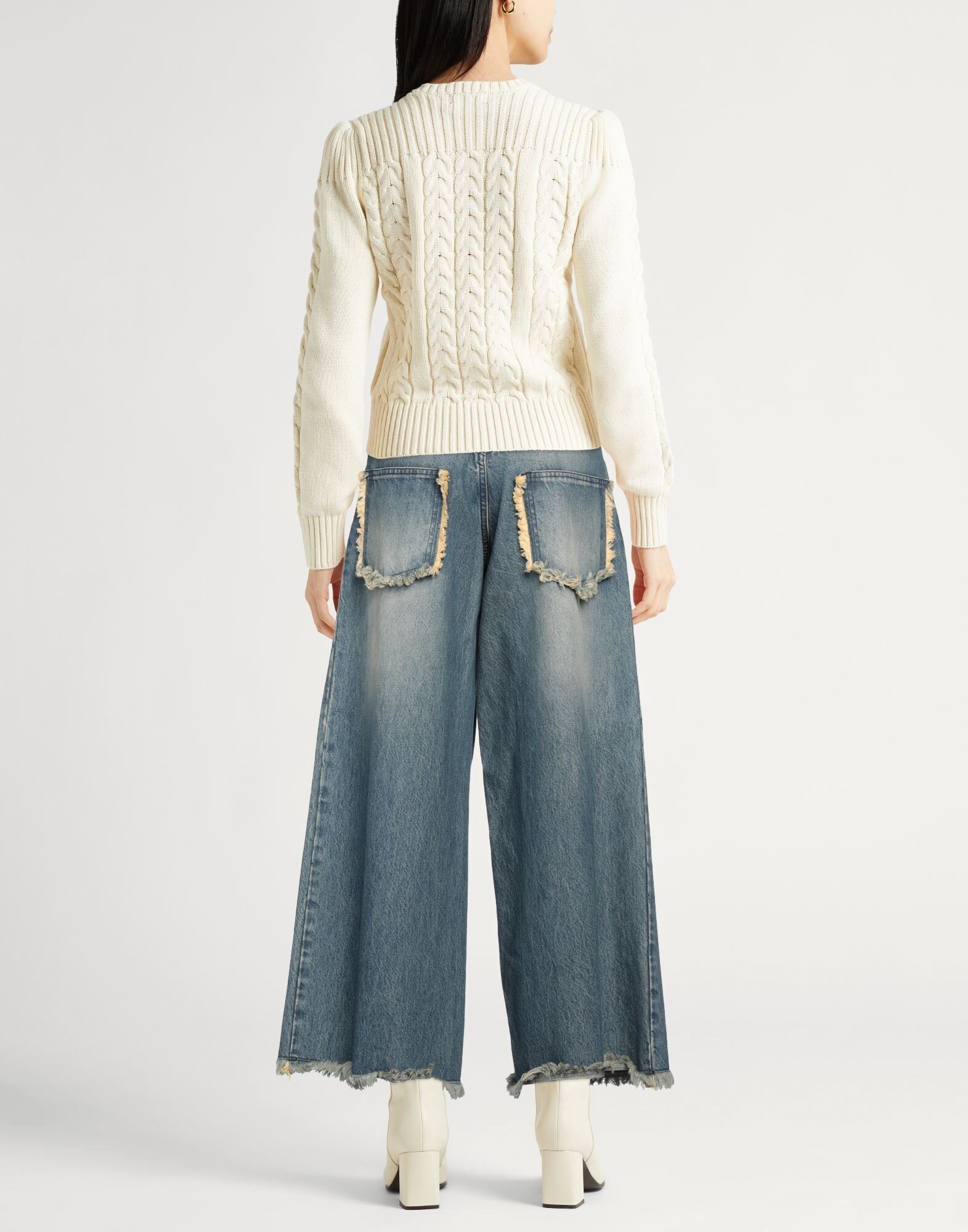 Джинсы прямого кроя, деним, выцветшие, однотонные, отделка из кожи, логотип бренда, бахрома, средняя стирка, высокая талия, классический крой, застежка на пуговицы, завязка на шнурок, множество карманов, машинная стирка, не отбеливать, не сушить в стиральной машине, содержит нетекстильные части животного происхождения