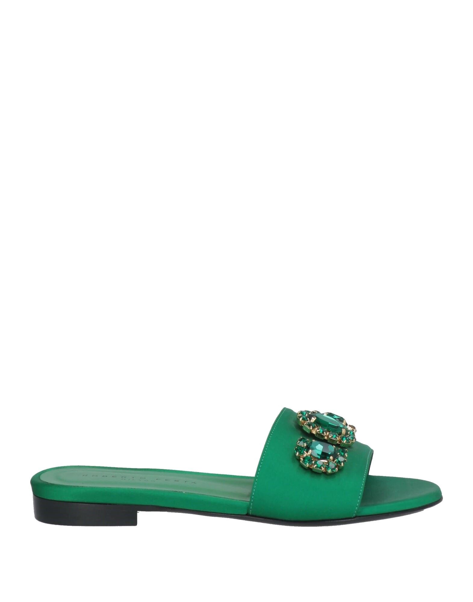 Сандалии-слайды, атлас, однотонные с аппликациями, кристаллы, кожаная подкладка, круглый носок, плоские, кожаная подошва, содержит нетекстильные части животного происхождения, большого размера