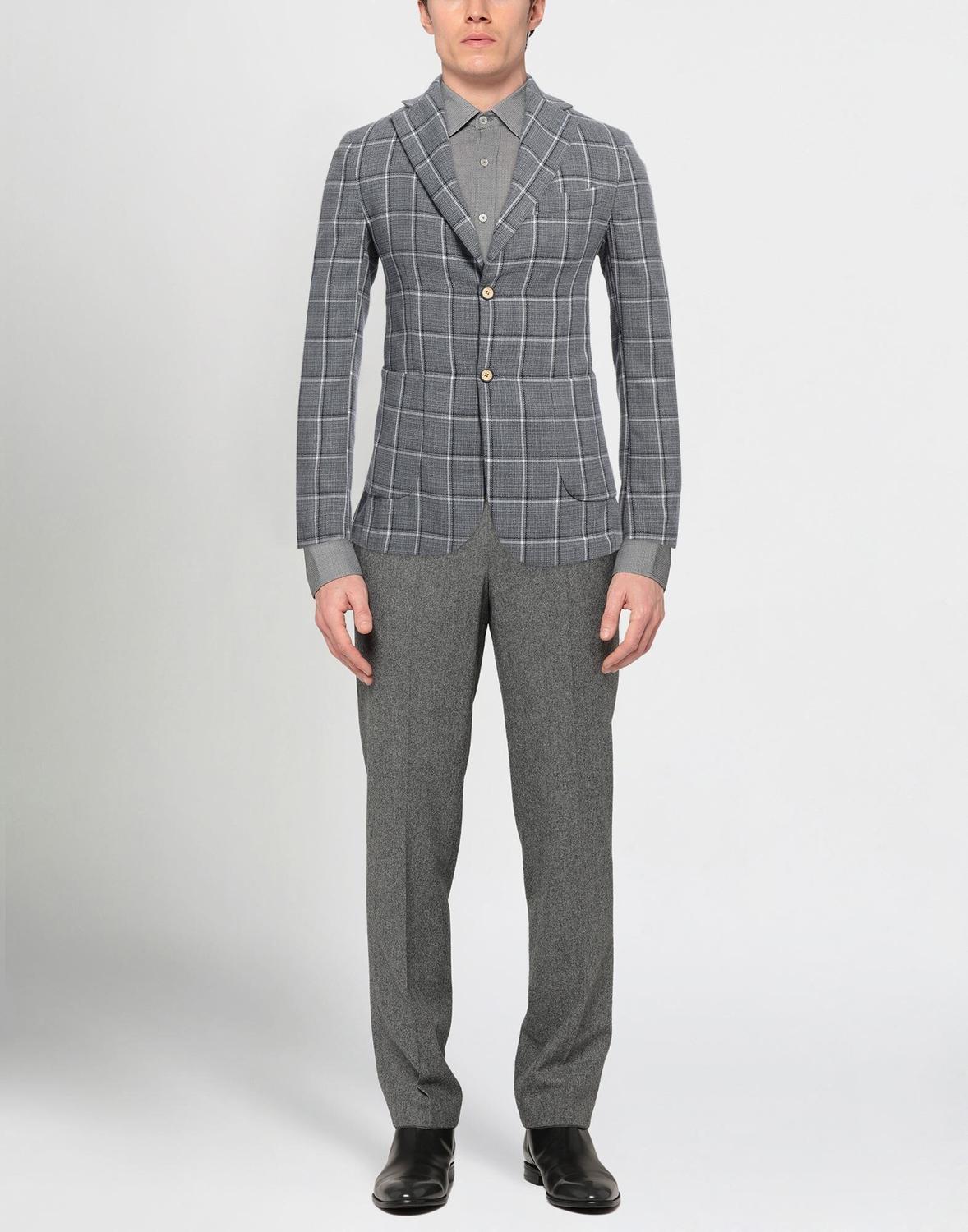 Полотняное переплетение, без аппликаций, в клетку, воротник с лацканами, однобортный, длинные рукава, манжеты на пуговицах, частичная подкладка внутри, 2 пуговицы, множество карманов, однобортный пиджак