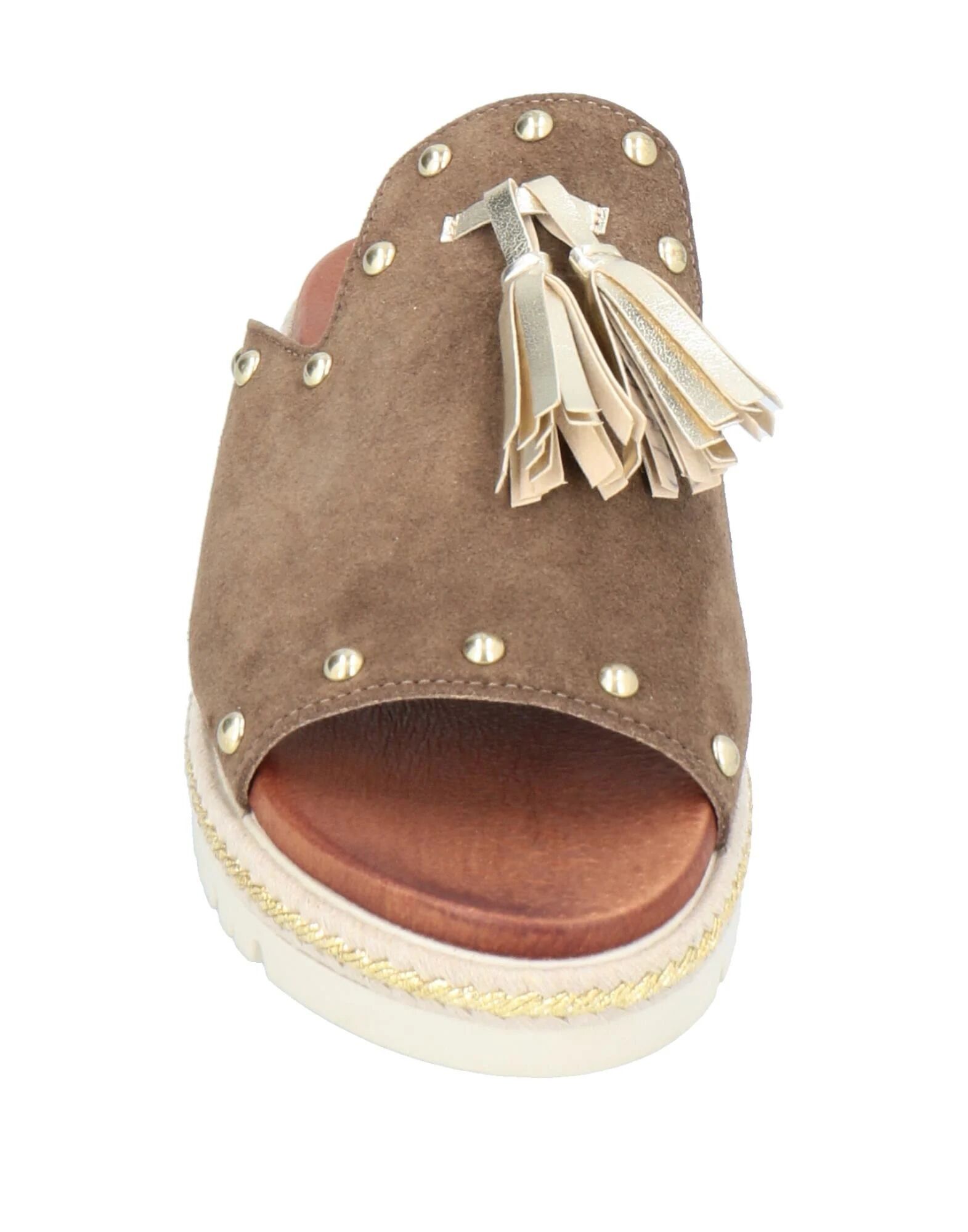 Кожа, эффект замши, ламинированный эффект, кисточки, заклепки, однотонный цвет с аппликациями, кожаная подкладка, скругленный носок, плоская, резиновая подошва с рифлением, содержит нетекстильные части животного происхождения, большой размер
