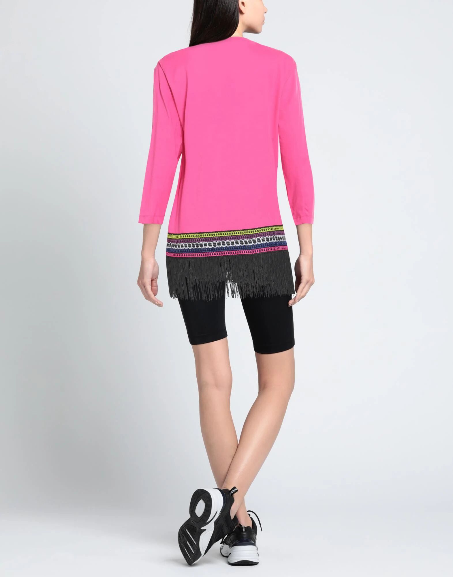 Футболка, трикотаж, однотонная с аппликациями, бахромой, круглым вырезом, длинными рукавами