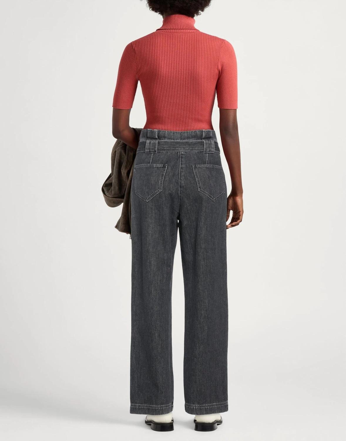 Деним, выцветший, логотип бренда, ремень, однотонный, цветная стирка, высокая талия, шлевки для ремня, широкие штанины, стандартный крой, застежка-молния, застежка на крючки, множество карманов, модель прямого кроя
