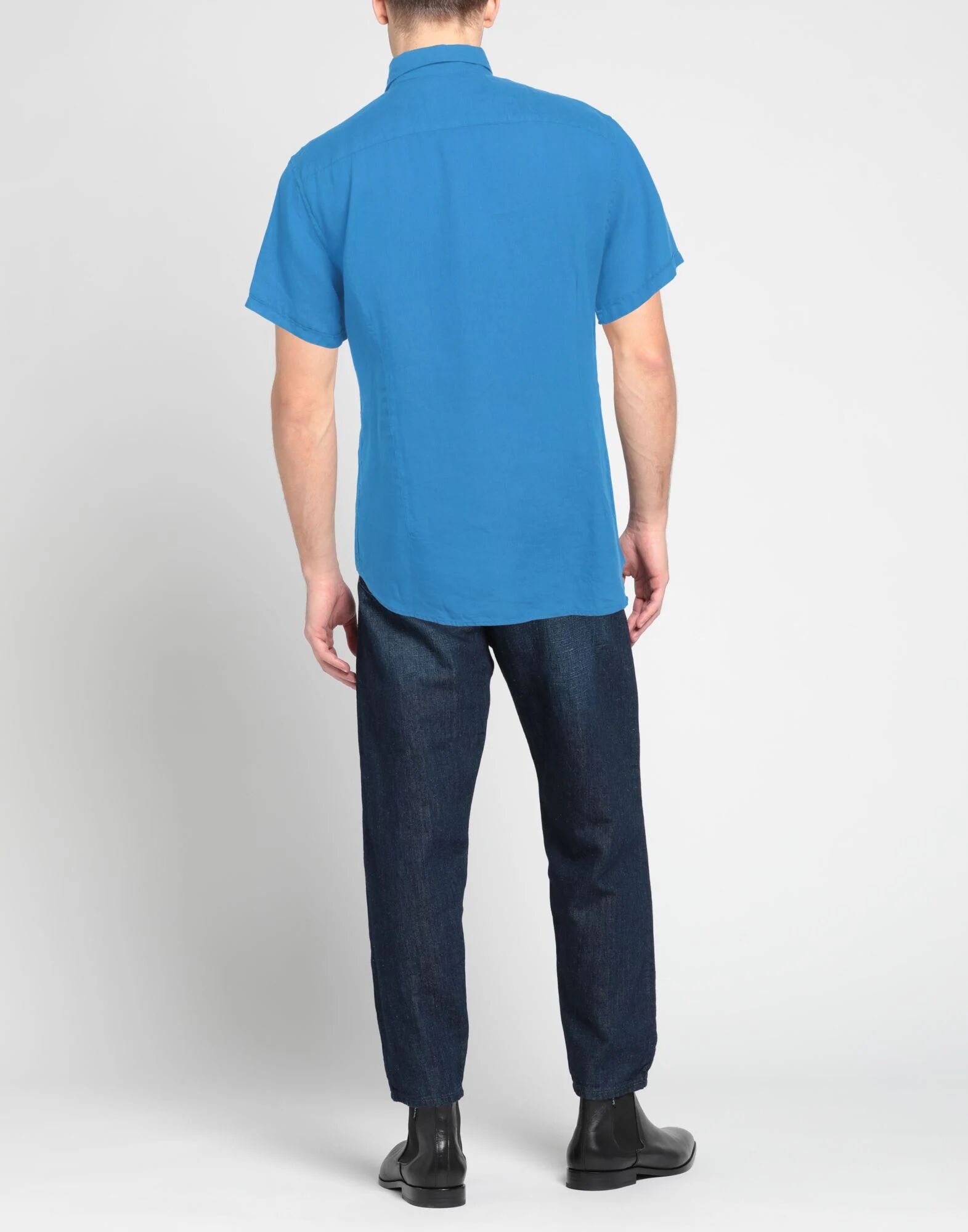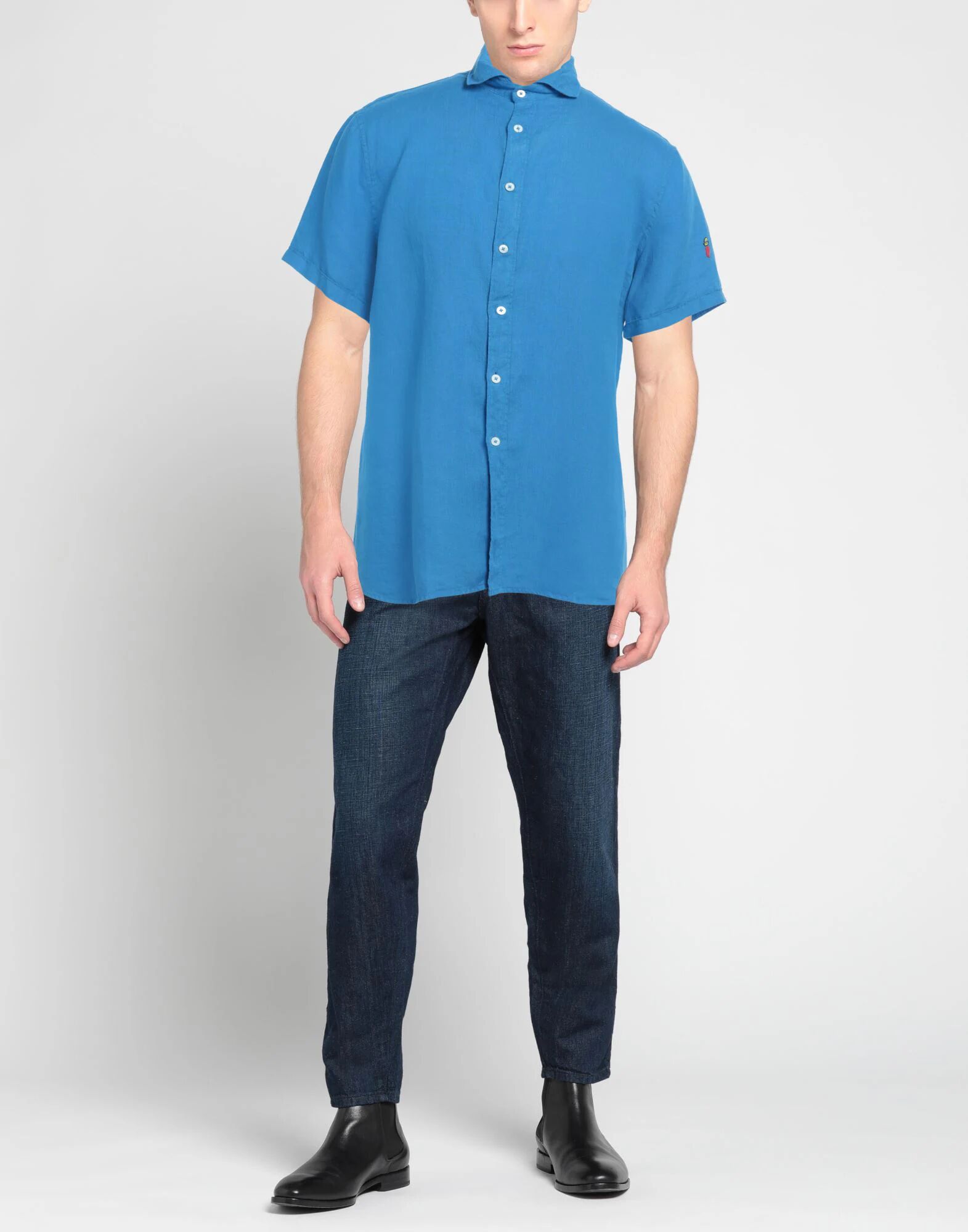 Рубашка прямого кроя, тканая, однотонная, логотип бренда, классический воротник, короткие рукава, застежка на пуговицы, без карманов