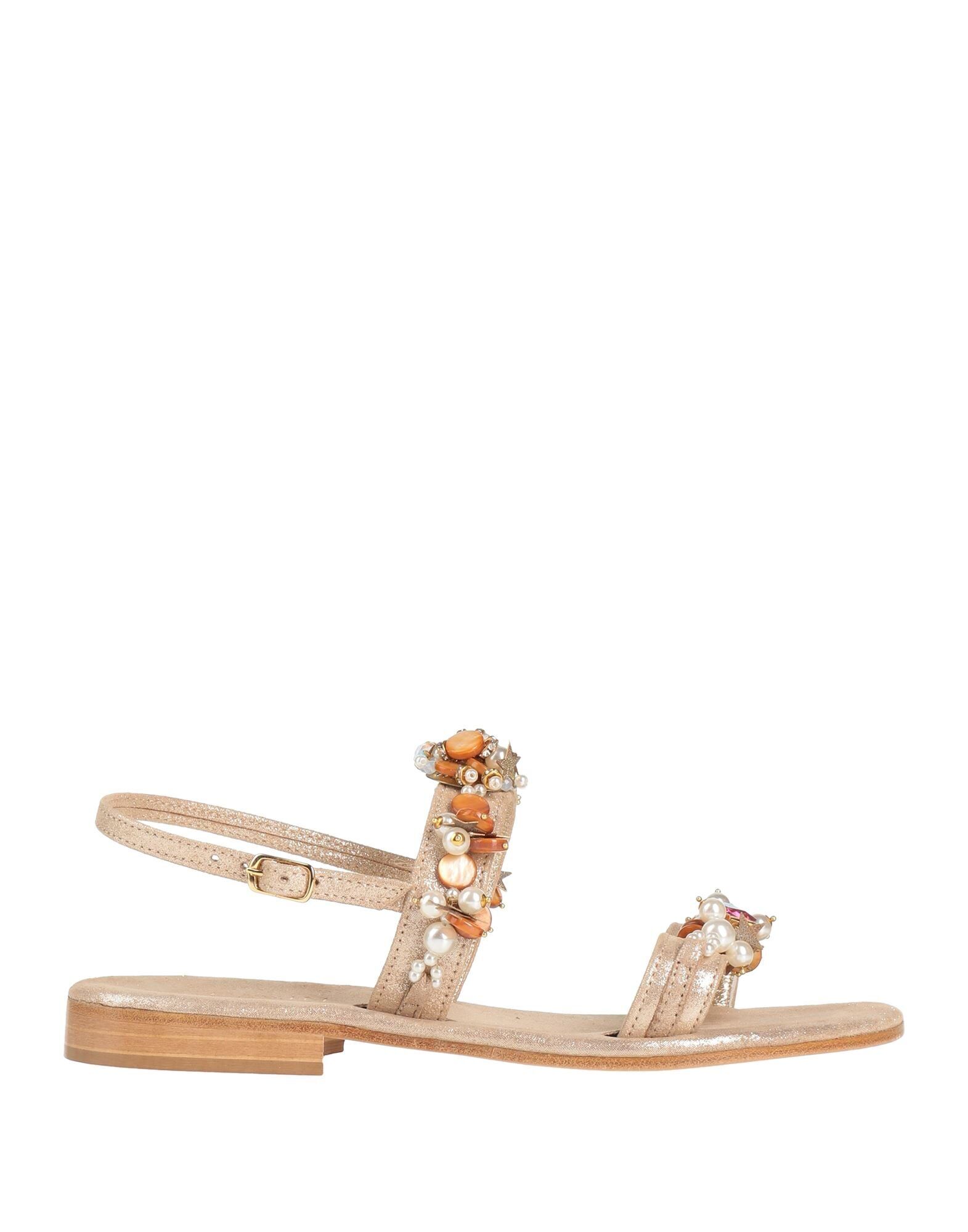 Кожа, ламинированный эффект, эффект замши, контрастные аппликации, многоцветный рисунок, кожаная подкладка, застежка-пряжка, скругленный носок, плоский, кожаная подошва, содержит нетекстильные части животного происхождения, сандалии с ремешком на щиколотке