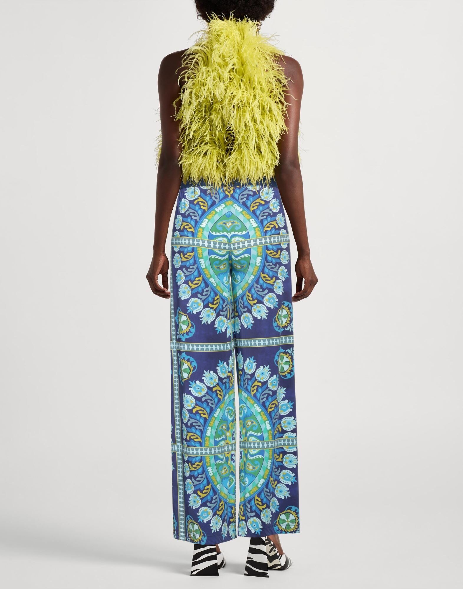 Брюки широкого кроя, синтетический трикотаж, цветочный принт, без аппликаций, высокая талия, эластичная талия, классический крой, без карманов, эластичный, машинная стирка, не отбеливать, не сушить в стиральной машине