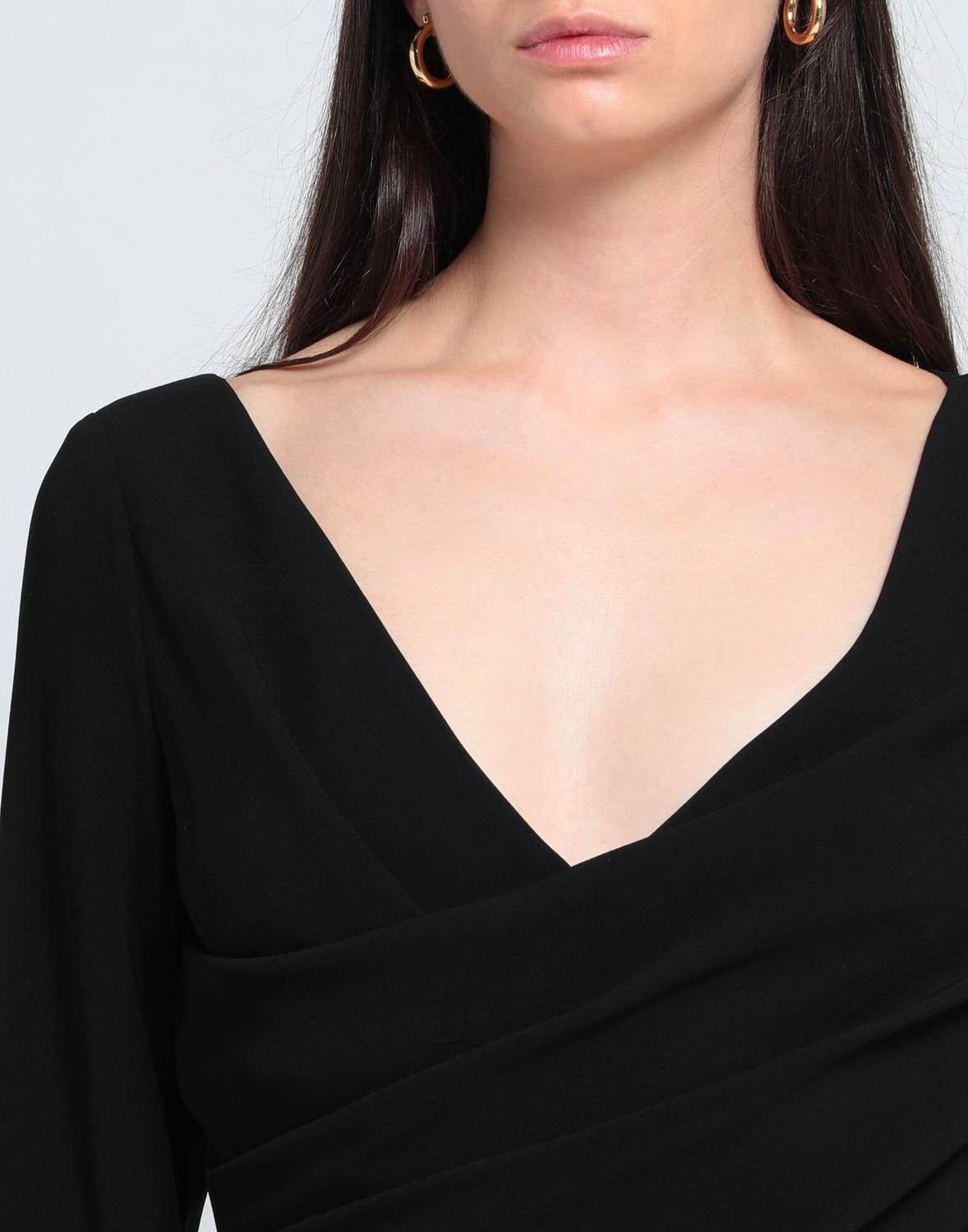 Креп, драпировка, однотонный цвет, глубокий вырез, длинные рукава, застежка-молния, без карманов