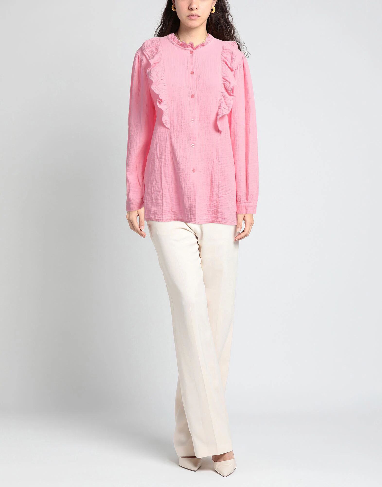 Рубашка с оборками, тканая, с оборками, однотонная, с круглым вырезом, длинными рукавами, манжетами на пуговицах, застежкой на пуговицы, без карманов