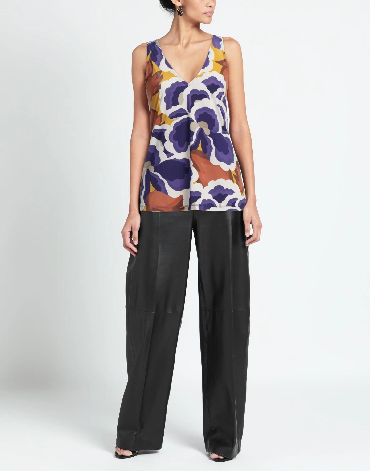 Топ, трикотаж, цветочный принт, без аппликаций, v-образный вырез, без рукавов, эластичный