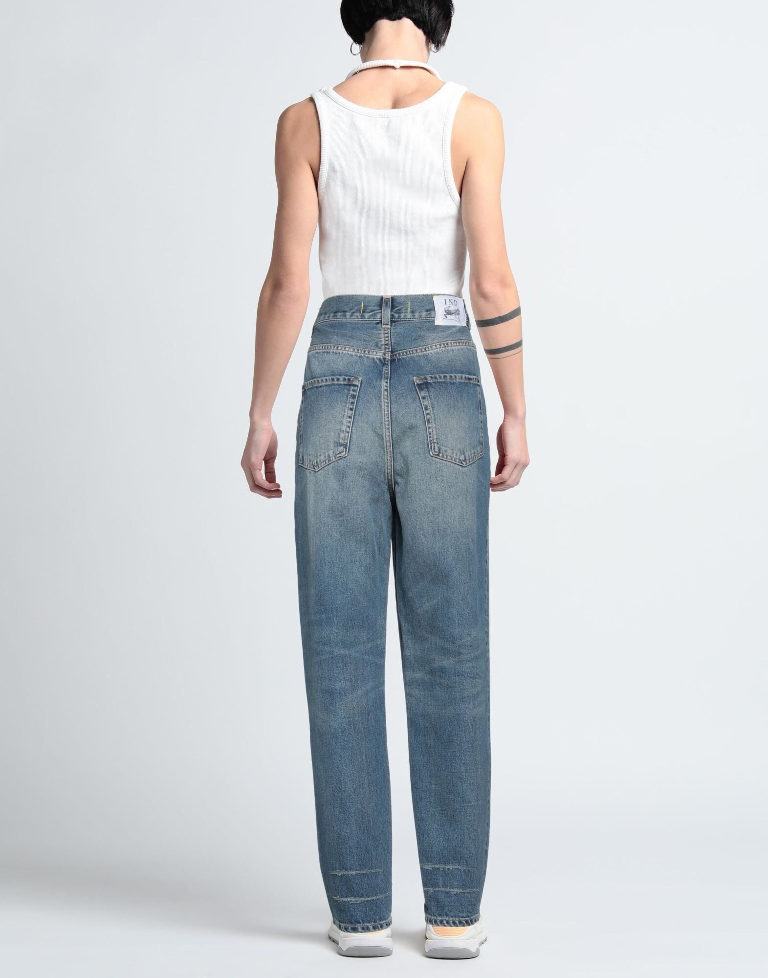 Зауженные джинсы, деним, выцветшие, однотонные, логотип бренда, средняя стирка, высокая талия, шлевки для ремня, свободный крой, 1 пуговица, застежка-молния, множество карманов, машинная стирка, не сушить в стиральной машине