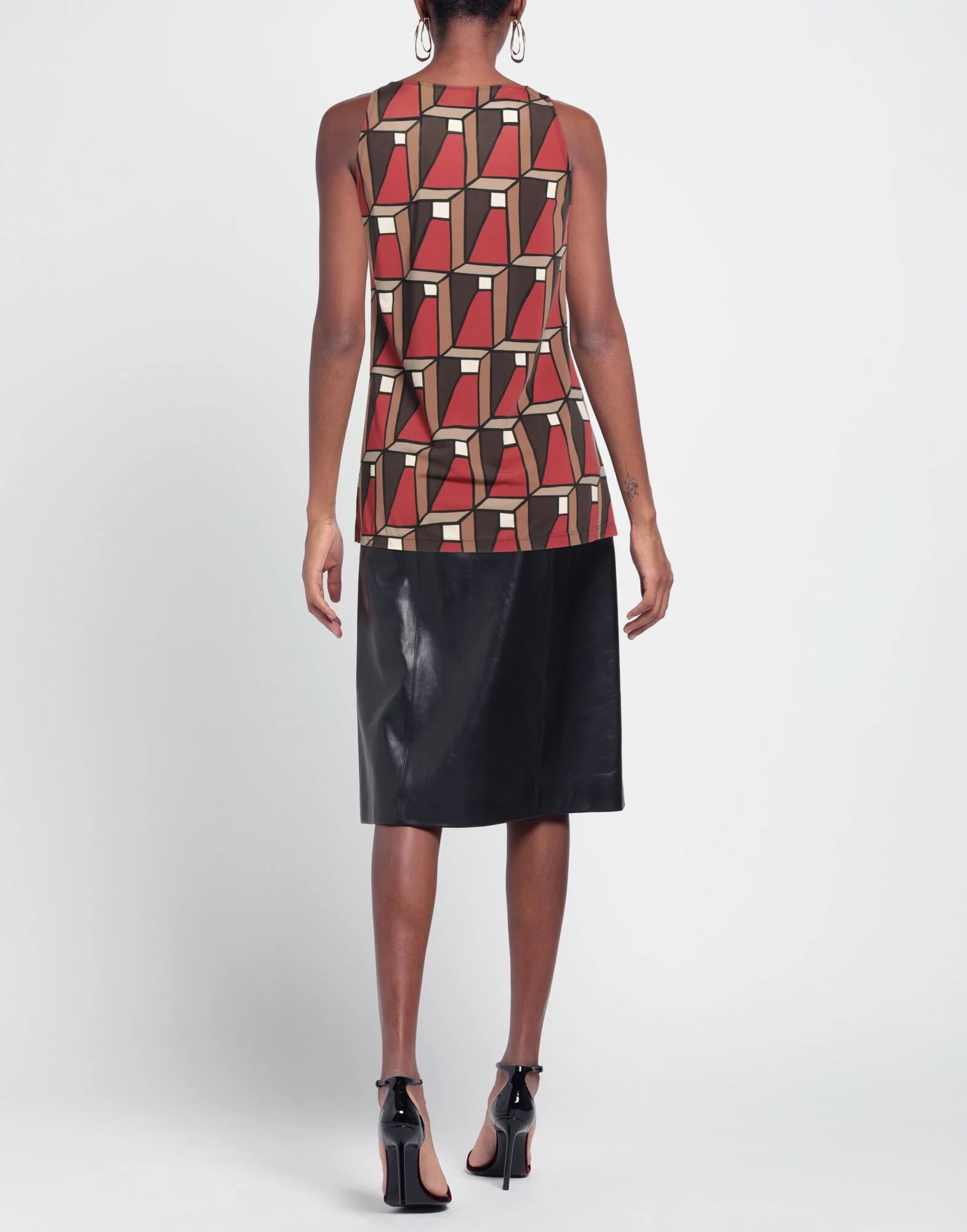 Топ, трикотаж, геометрический принт, без аппликаций, v-образный вырез, без рукавов, эластичный