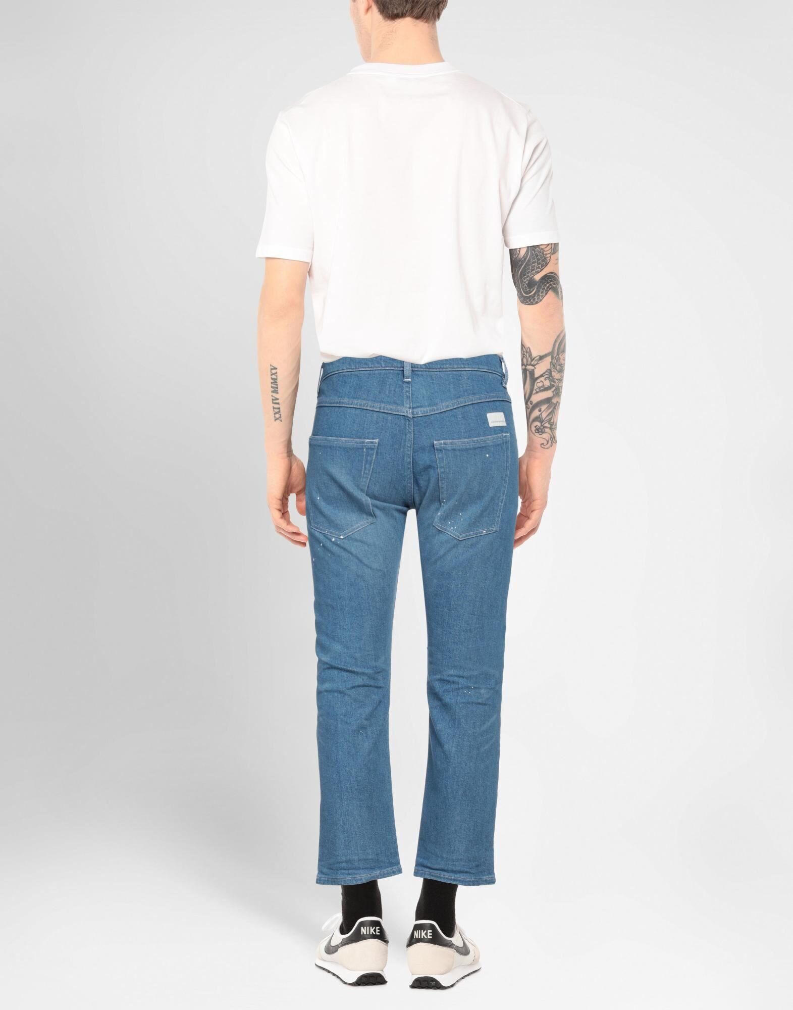 Деним, выцветший, с эффектом пятен, логотип бренда, однотонный, средняя стирка, средняя посадка, застежка на пуговицы, бахрома по низу, пять карманов, эластичный, модель прямого покроя, большой размер