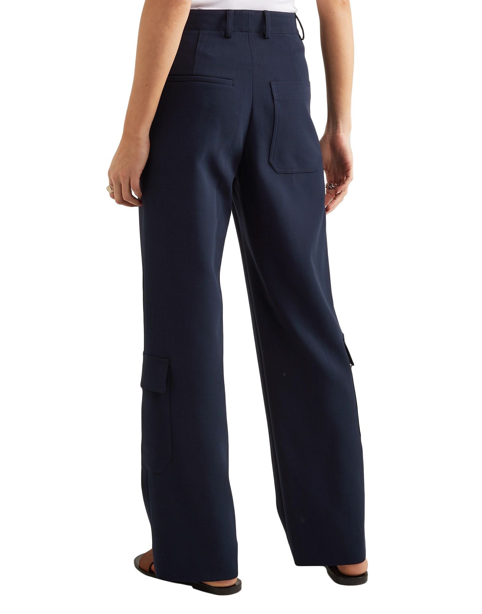 Креп, без аппликаций, однотонный, с низкой талией, классический крой, множество карманов, прямые брюки