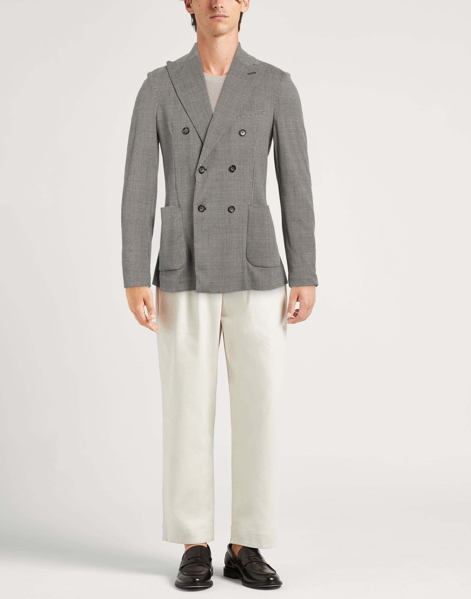 Двубортный блейзер, пике, без аппликаций, узор «гусиная лапка», воротник с лацканами, длинные рукава, частично на подкладке, застежка на пуговицы, множество карманов, двойные шлицы сзади, эластичный, машинная стирка, не отбеливать, не сушить в стиральной машине