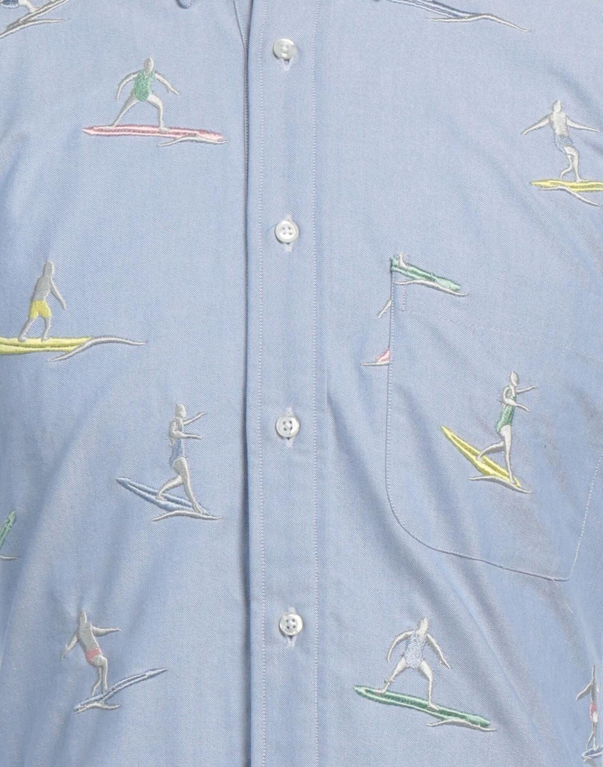 Рубашка прямого кроя, шамбре, разноцветная, вышитая, логотип бренда, воротник на пуговицах, длинные рукава, застежка на пуговицы, один нагрудный карман, химчистка, не отбеливать, не сушить в стиральной машине