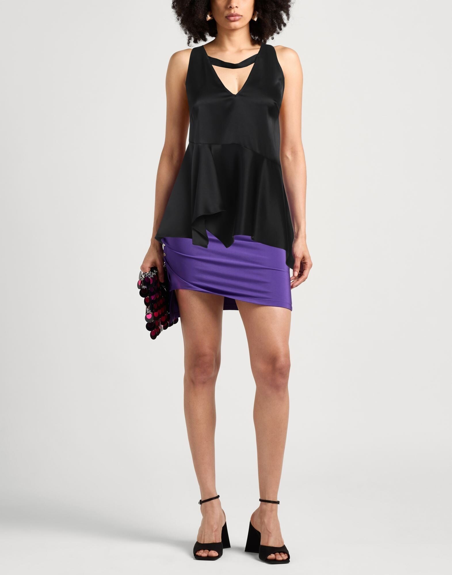 Топ с баской, атлас, однотонный, без аппликаций, круглый вырез, без рукавов, застежка-молния, сухая чистка, не отбеливать, нельзя сушить в стиральной машине, этот бренд маломерит