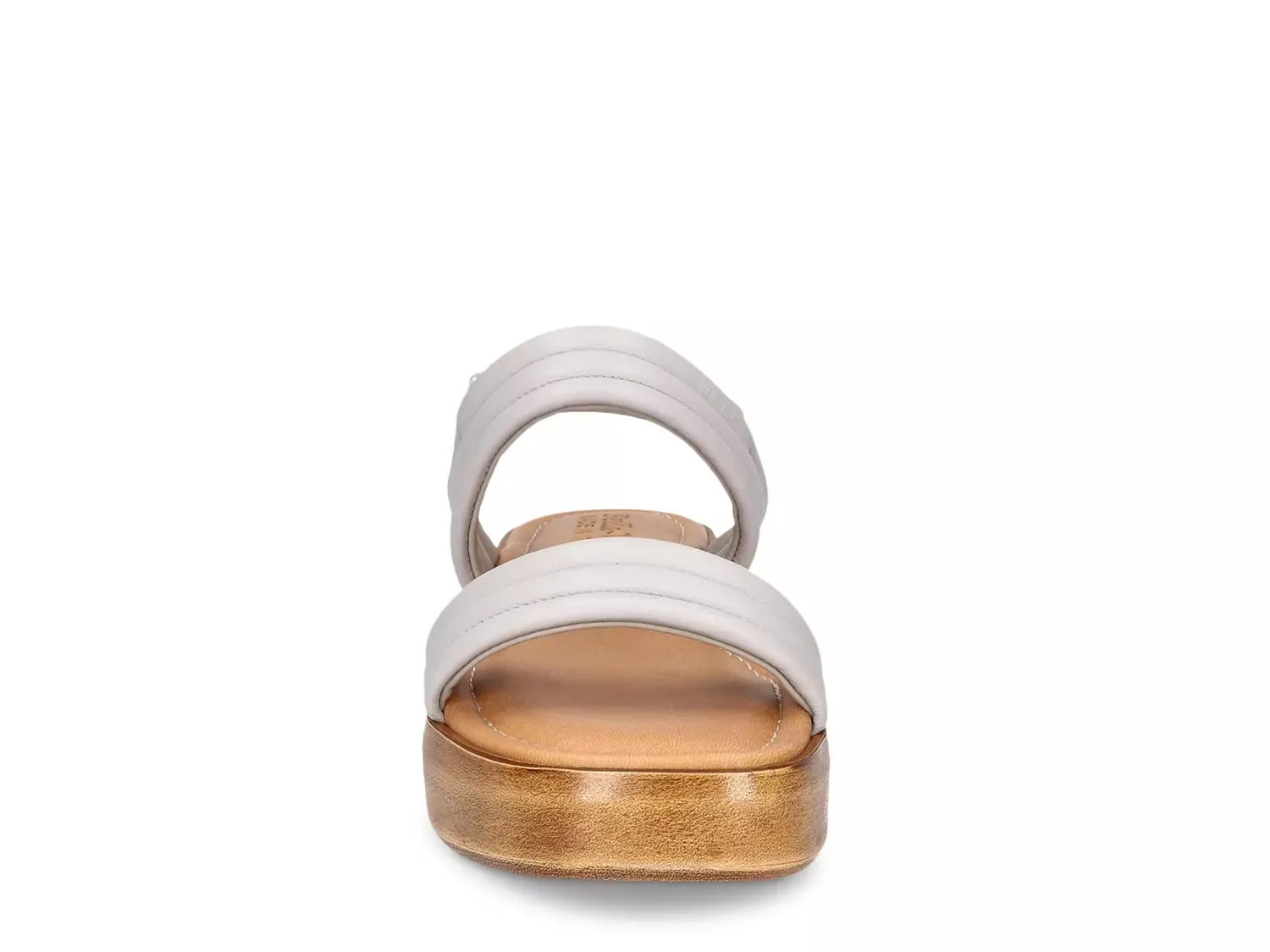 Этим летом демонстрируйте свою элегантность с помощью сандалий на платформе Ode Italy от Bella Vita. Многополосный верх, вдохновленный пуховиками, изготовлен из итальянской кожи и подчеркивает этот сандалий с задним ремешком, который выполнен с толстой платформой и каблуком- wedges, чтобы добавить модный акцент к стилю.