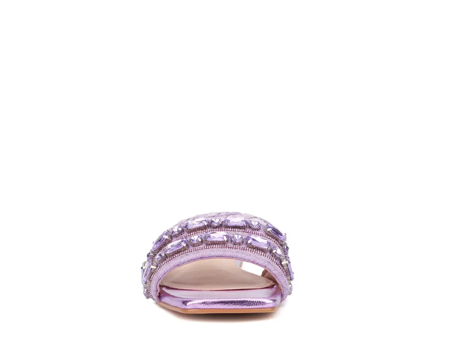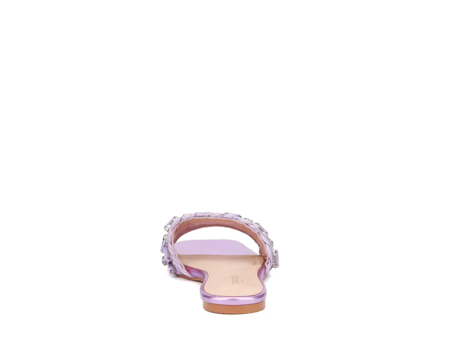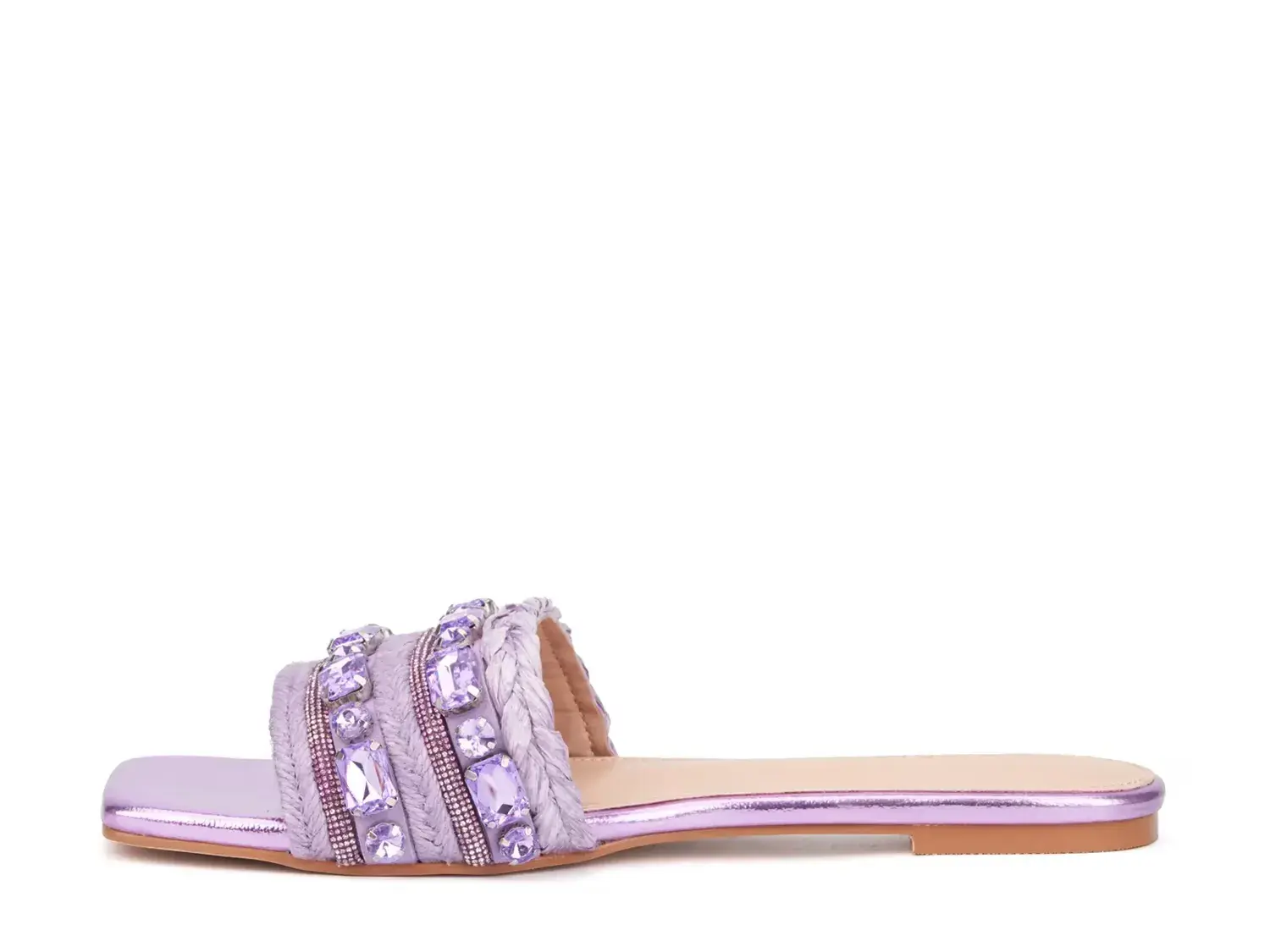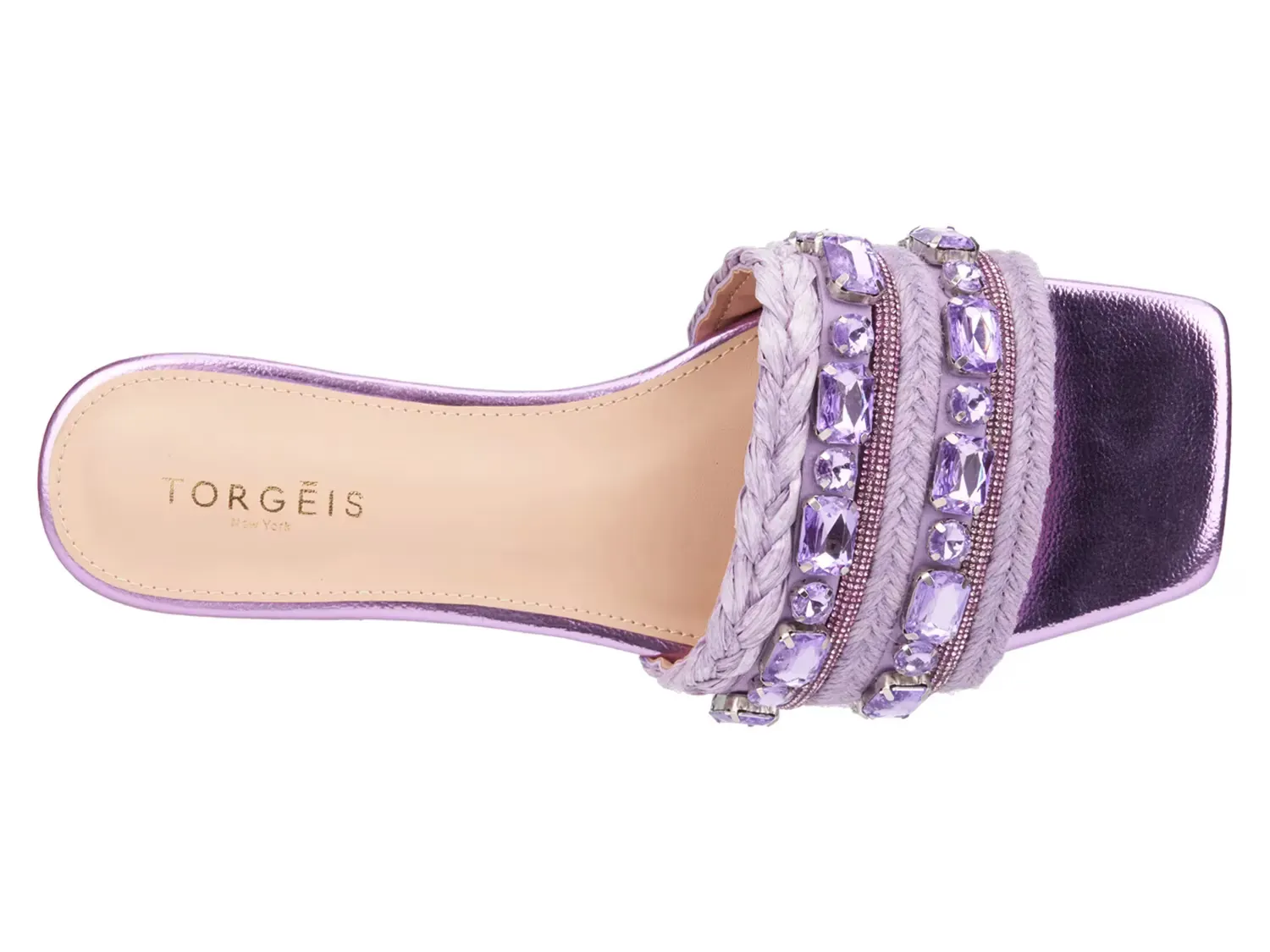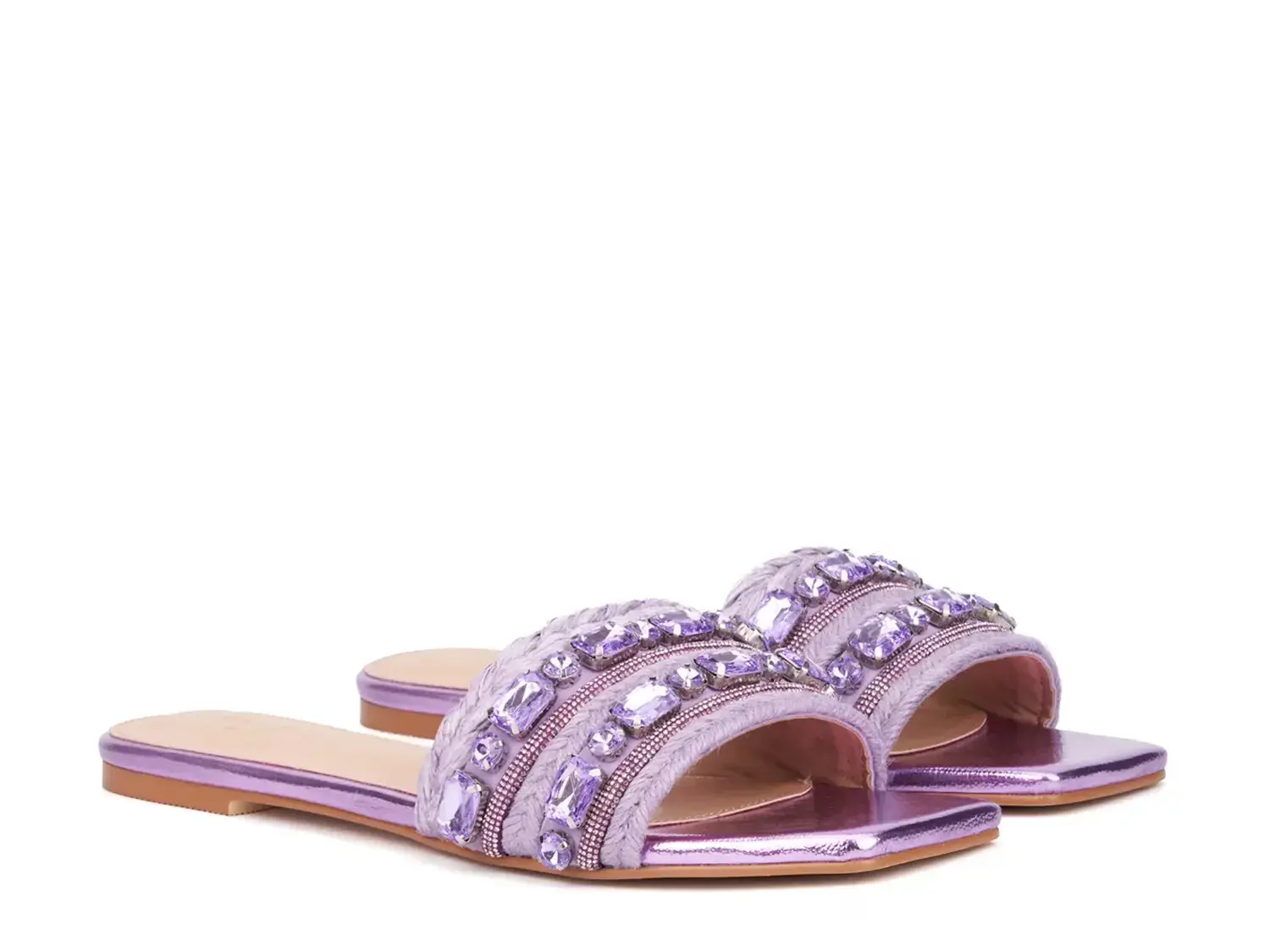 Подчеркните свой летний стиль с помощью нежных деталей сандалий Miya от TORGEIS! Это улучшенная версия слайд-силуэта, эта пара украшена классической толстой лямкой с стразами, плетеными акцентами и элегантными драгоценными камнями. Квадратный носок придаёт современный шарм.