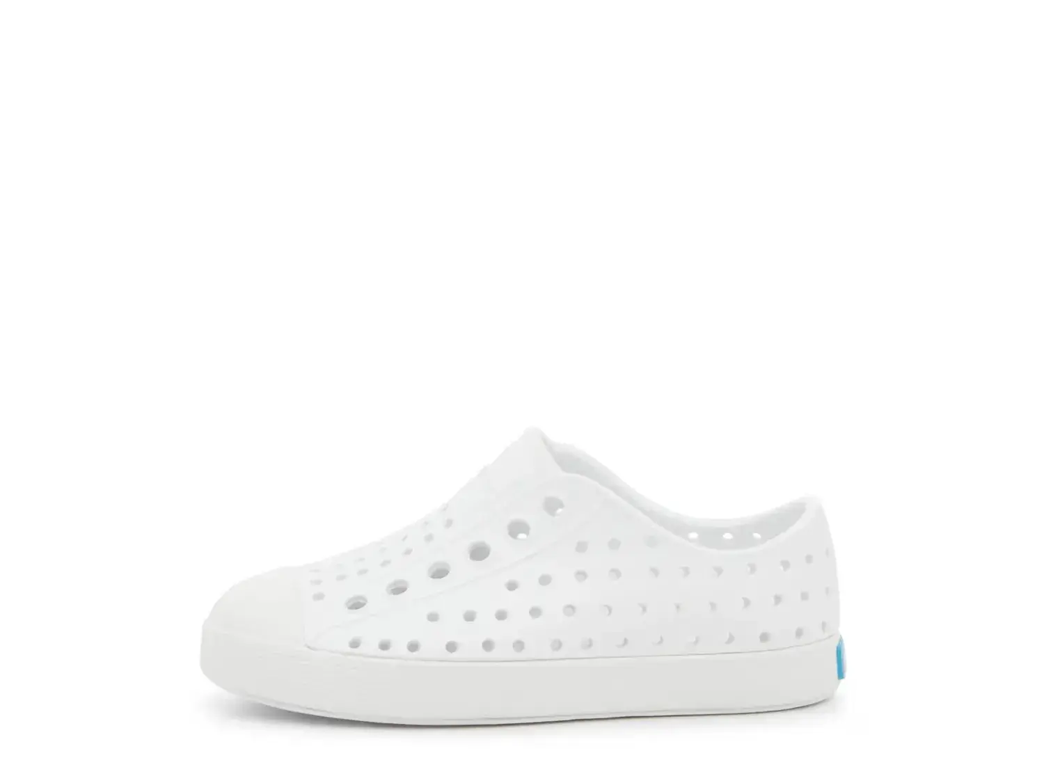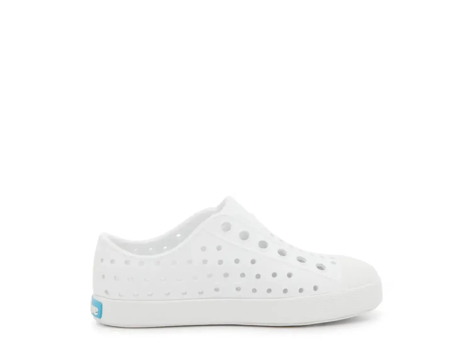 Кроссовки Jefferson от Native вскоре станут любимой обувью вашего ребенка в теплую погоду. Эта пара имеет классический силуэт, который подходит почти к любому наряду. Кроме того, они оснащены простым в использовании дизайном без шнурков и отверстиями для вентиляции, что идеально подходит для знойных летних дней.