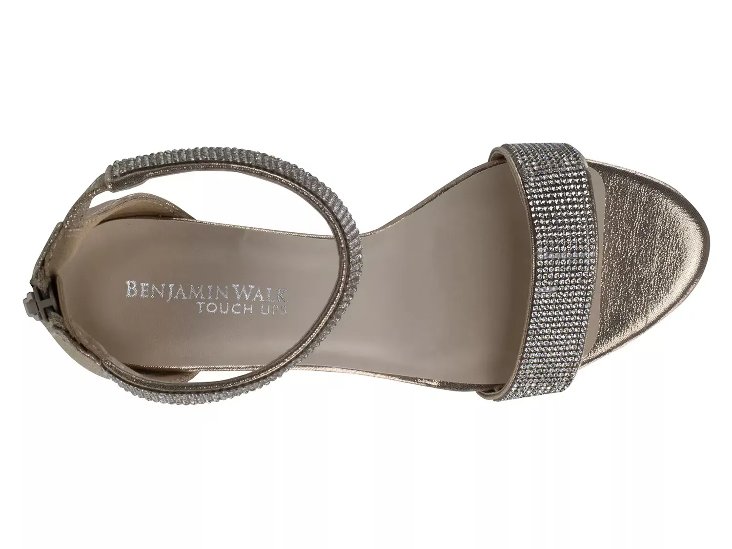 Обновите свой гардероб с помощью сандалий Marley от Touch Ups by Benjamin Walk. Эти мерцающие сандалии украшены rhinestones на перепонках и эластичном ремешке на лодыжке и завершаются массивным каблуком.