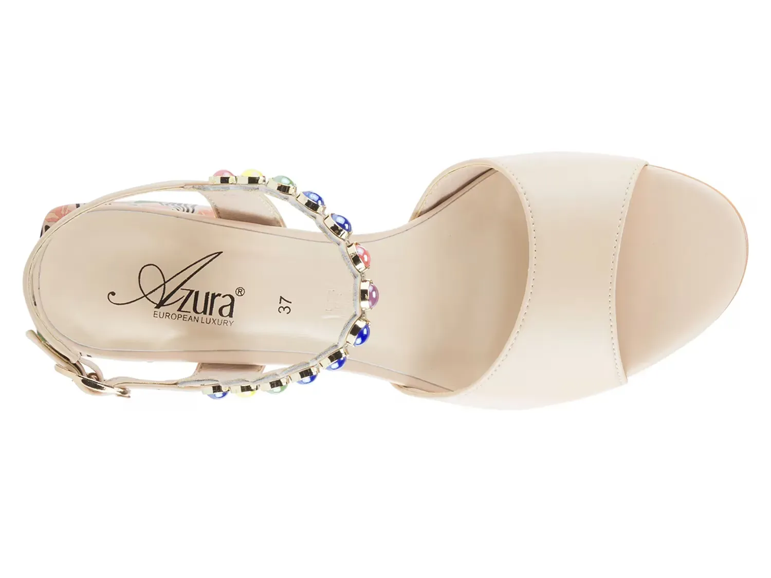 Усовершенствуйте свой летний стиль с легендарными сандалиями от Azura. Классический силуэт выполнен с модным толстым каблуком, волнистым ремешком и элегантными украшениями для яркого акцента.