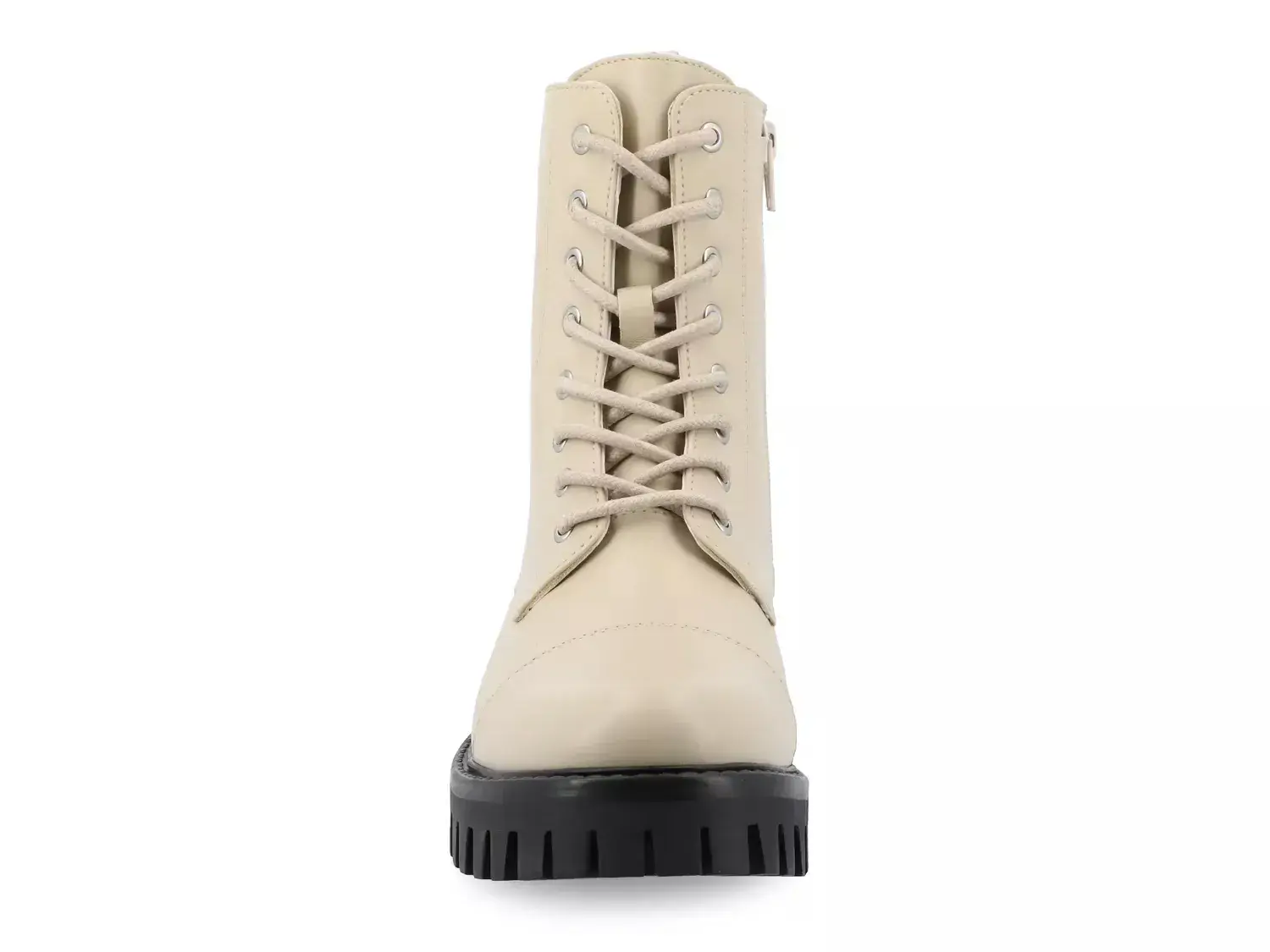 Поднимите свой модный настрой с ботильонами Aaley от коллекции Journee. Ботинки в военном стиле, имеющие стильный верх из веганского синтетического материала, оснащены как шнуровкой, так и молнией для идеальной посадки. Прочная подошва обеспечивает надежное сцепление.