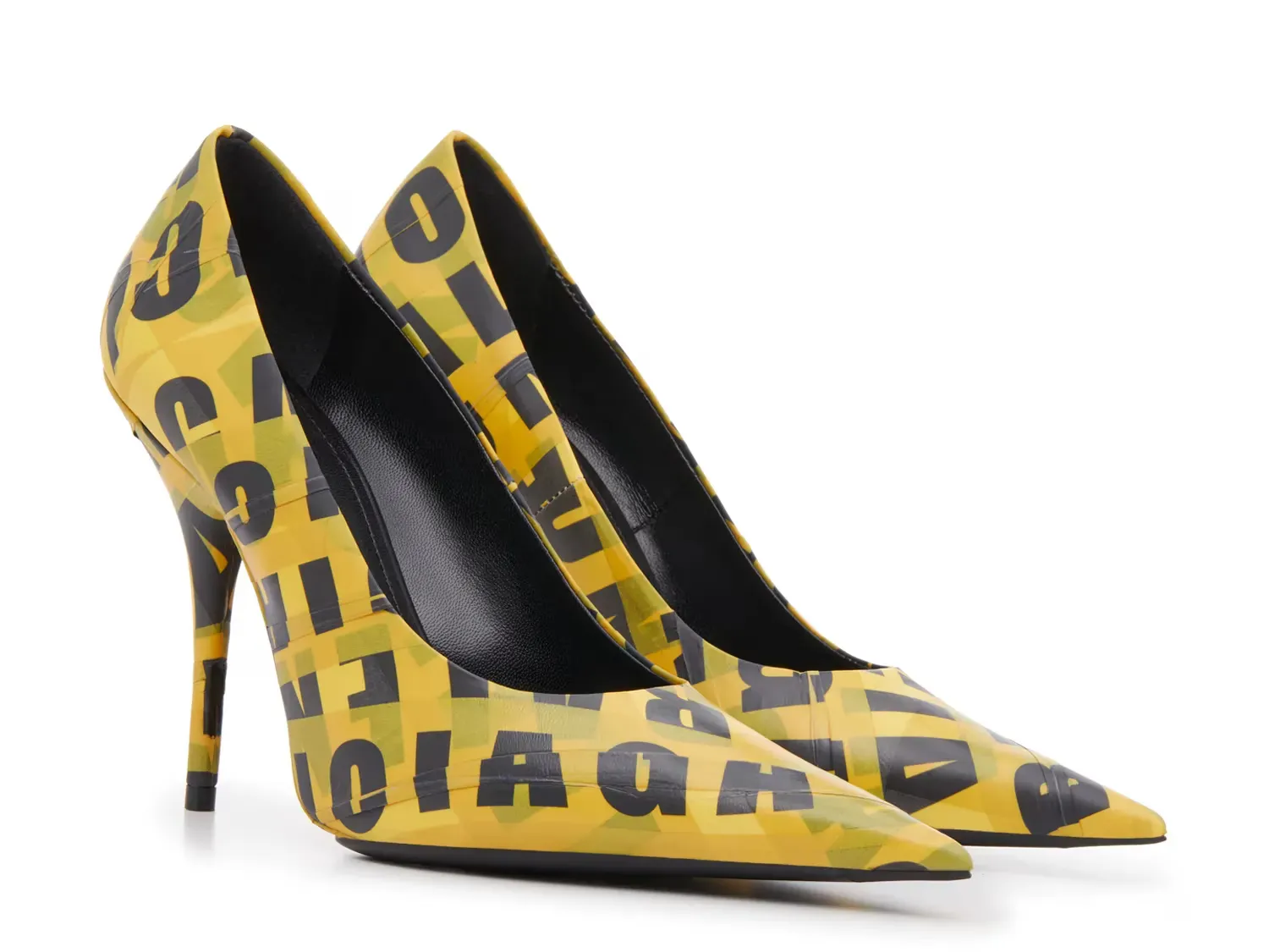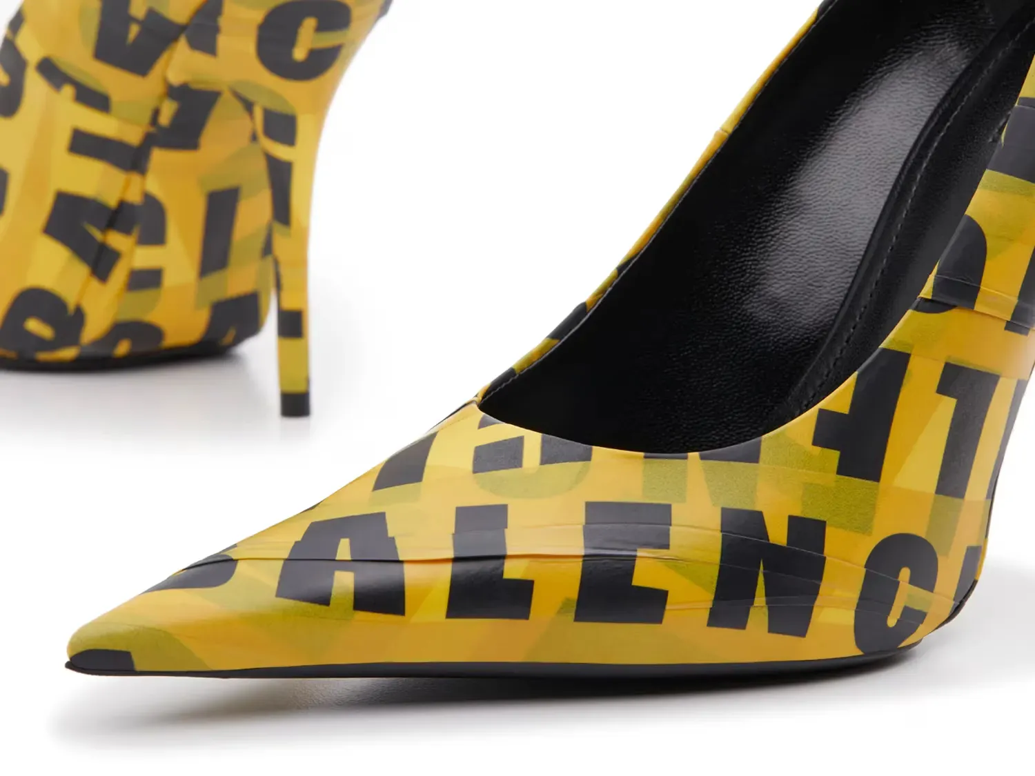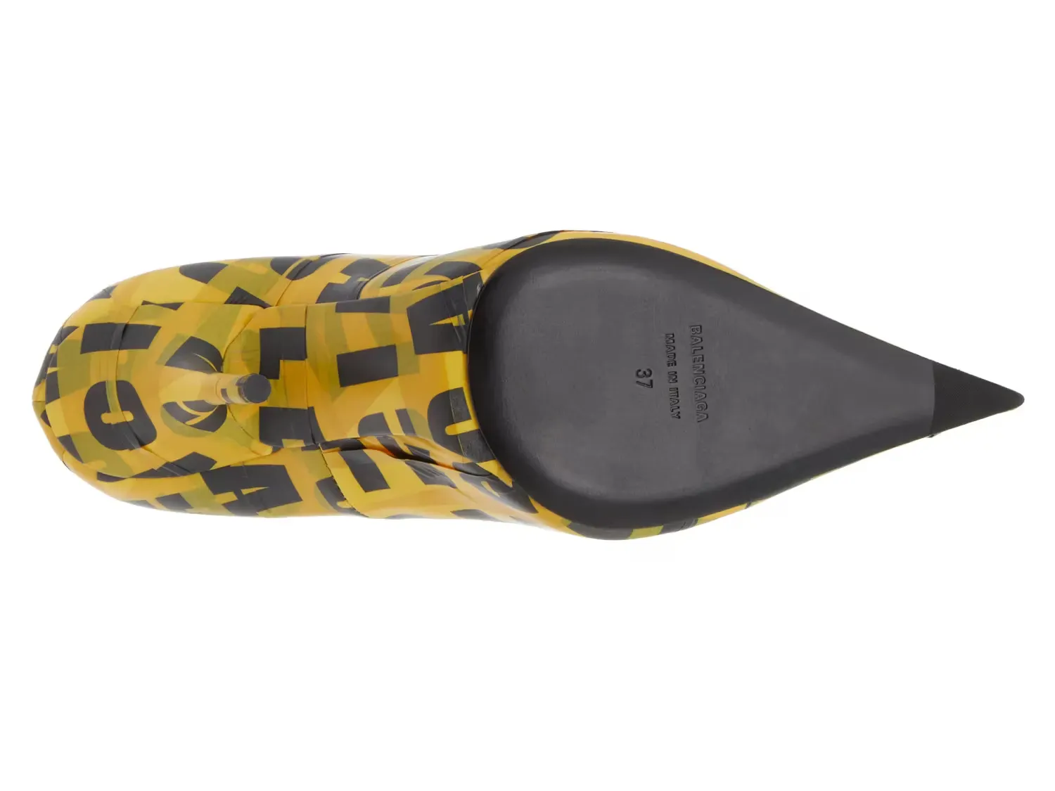 Осторожно: Этот стиль выделяется! Ботинки Knife от Balenciaga имеют классический силуэт, дополненный элегантными акцентами, такими как острая носка и каблук-стилет. Изготовлены из желтой ленты, обернутой по верхней части, с ярко напечатанным названием бренда.