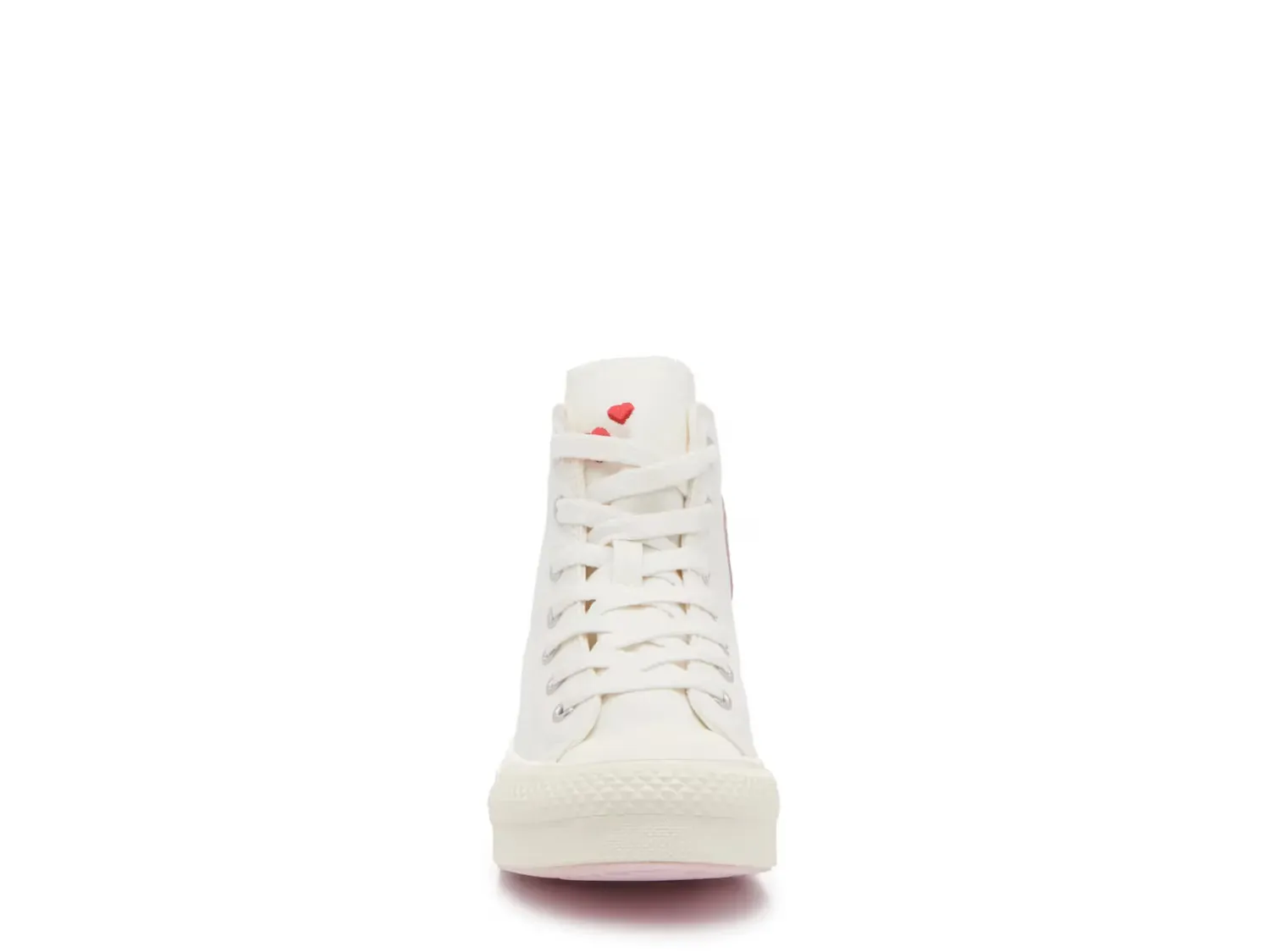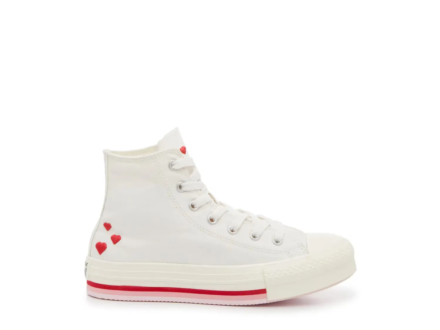 Кроссовки Chuck Taylor All Star с высоким верхом от Converse делают гардероб вашего малыша очаровательным благодаря вышитым сердечкам. Толстая вулканизированная средняя подошва украшена яркими полосками для дополнительного веселья.