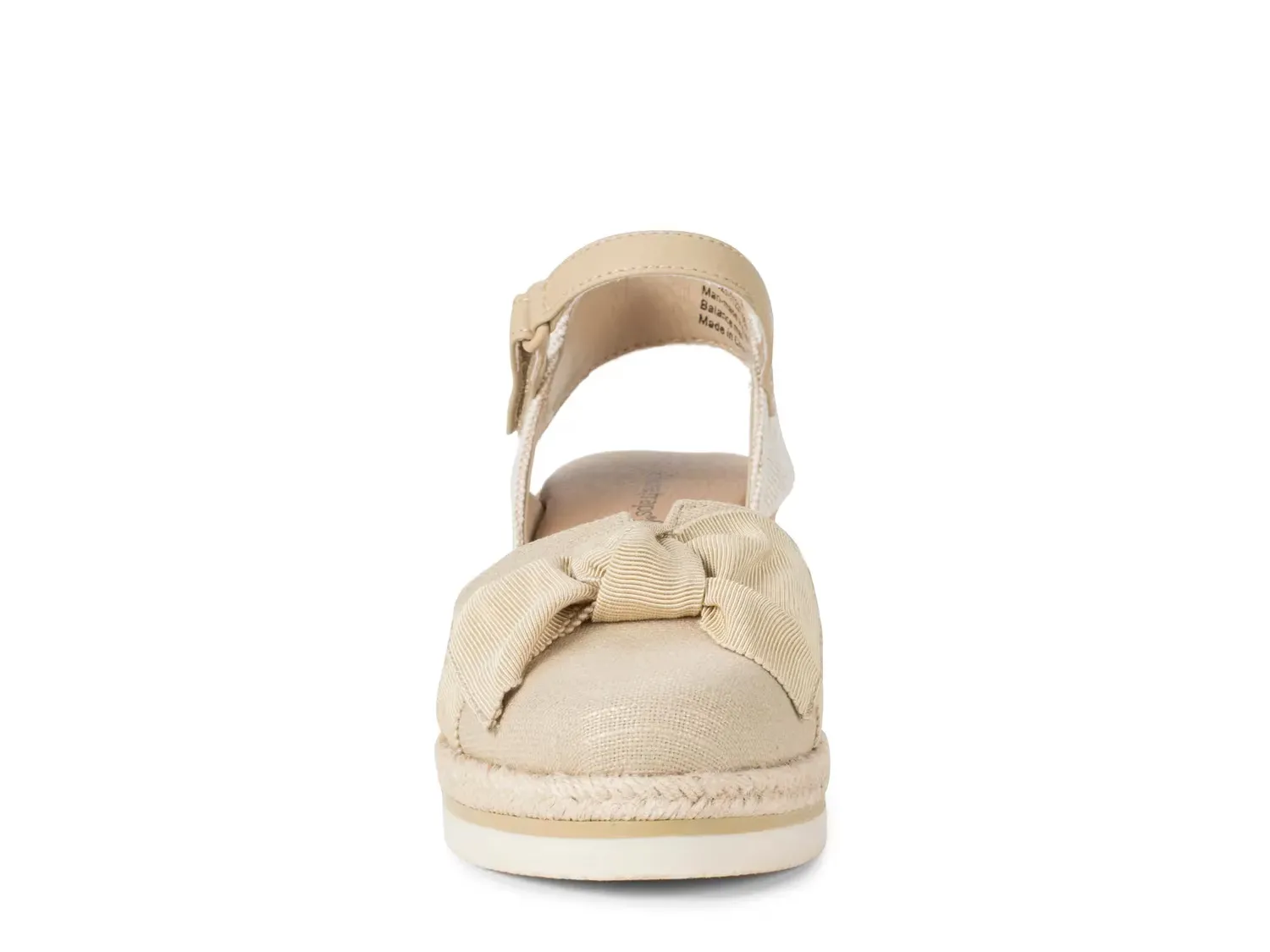 Завершите летний стиль с помощью босоножек на платформе Arabelle от Baretraps. Эта пара имеет классический пробковый каблук, заплетенный эспадрильный элемент и милый бантик сверху.