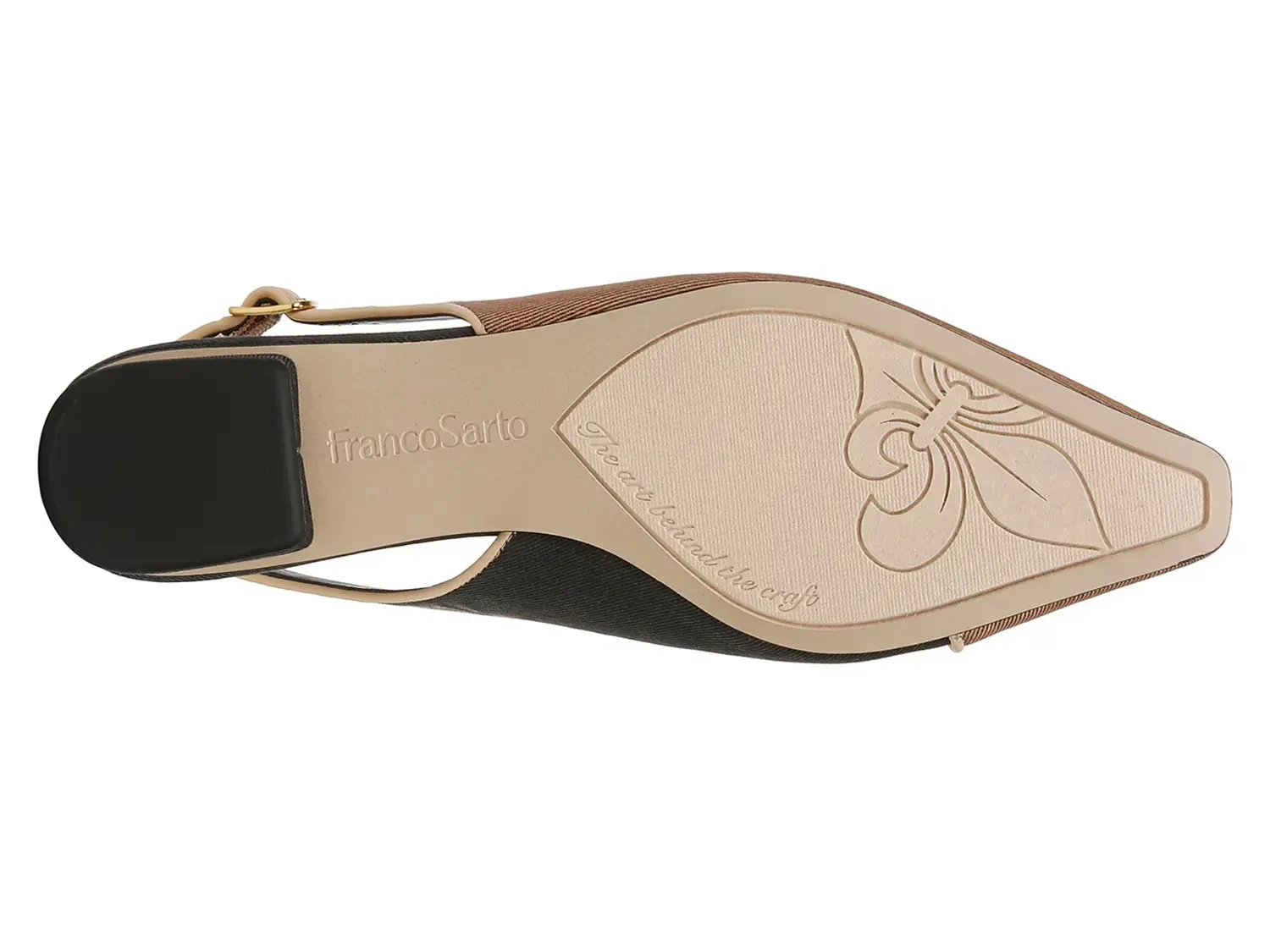 На рассвете или закате, выглядите элегантно в балетках Raena от Franco Sarto. Слингбэк имеет модный заостренный нос и скульптурный низкий каблук, который сохраняет ваш стиль изящным. Регулируемый пряжка обеспечивает надежную посадку.