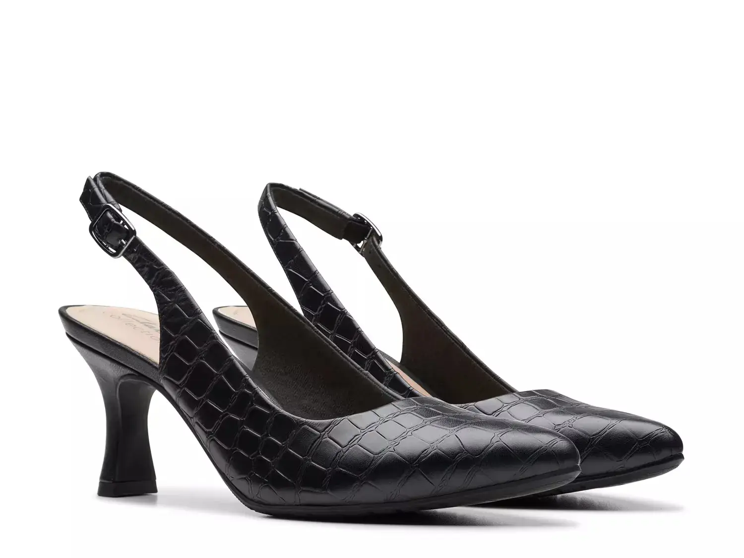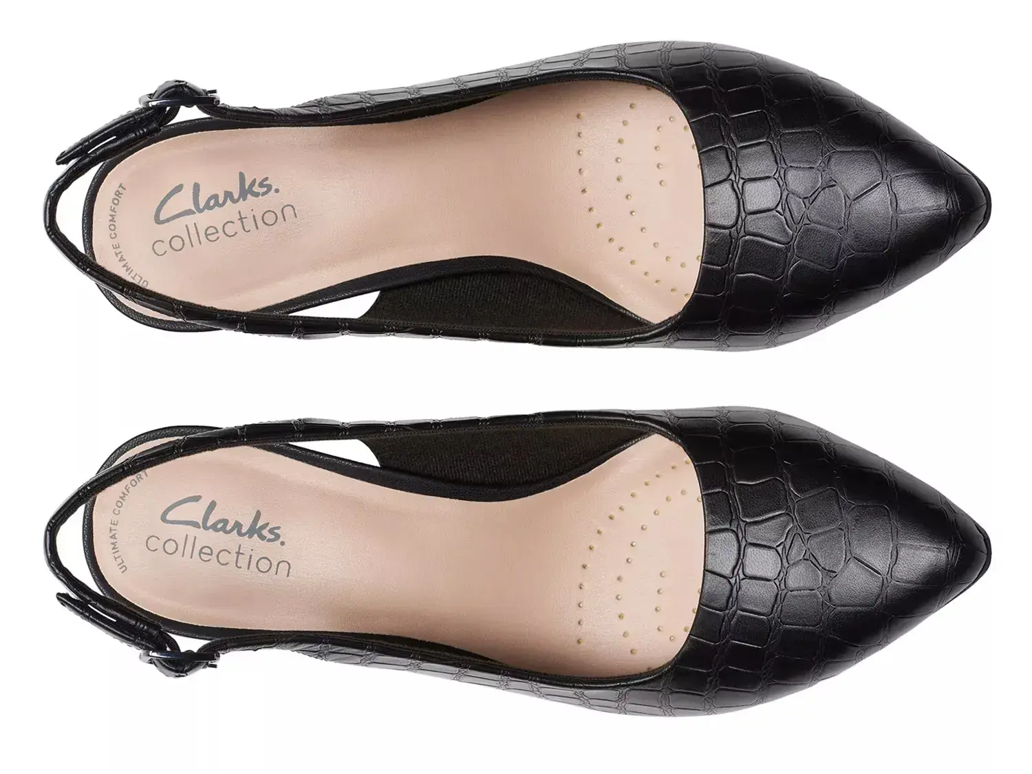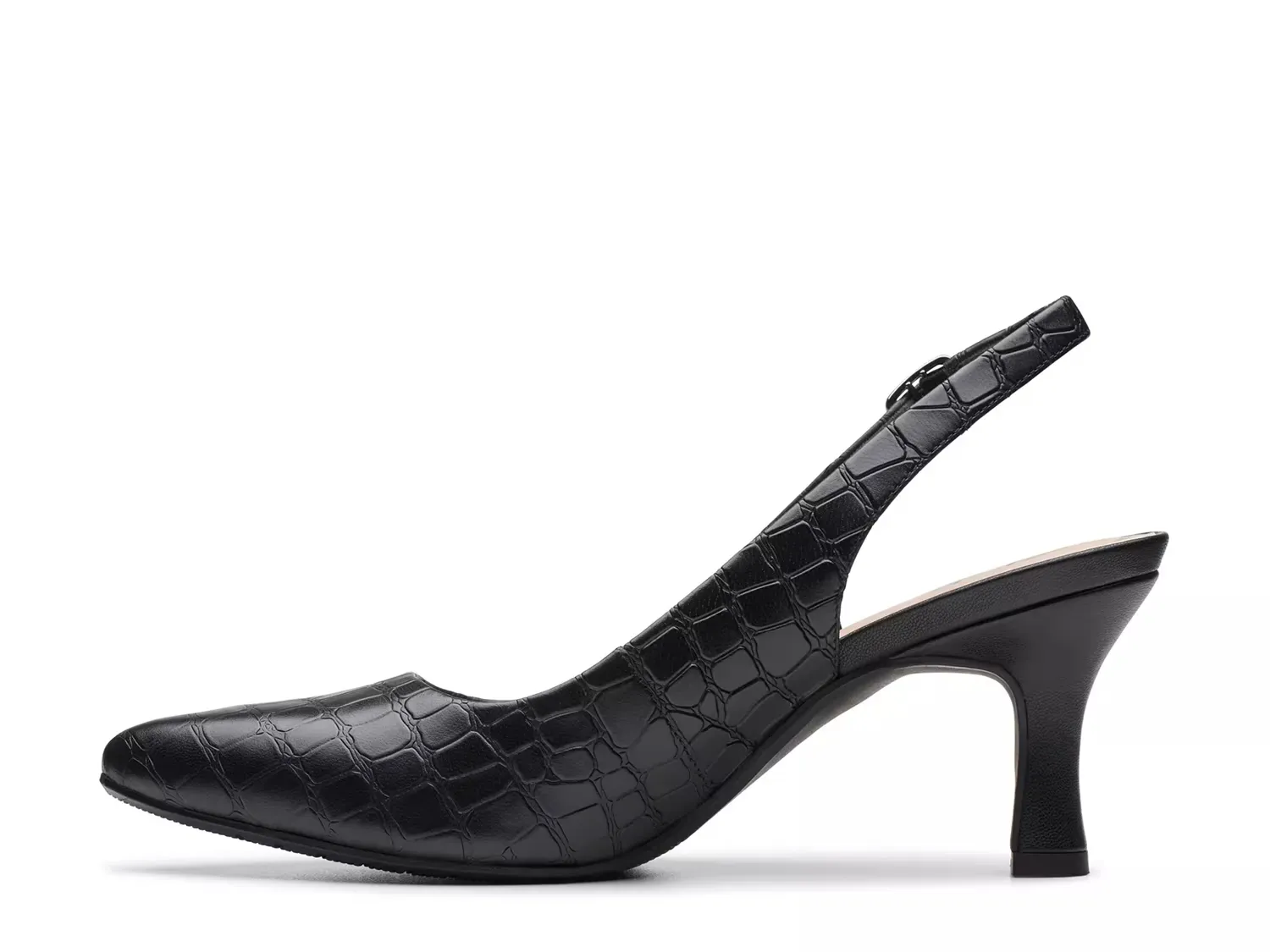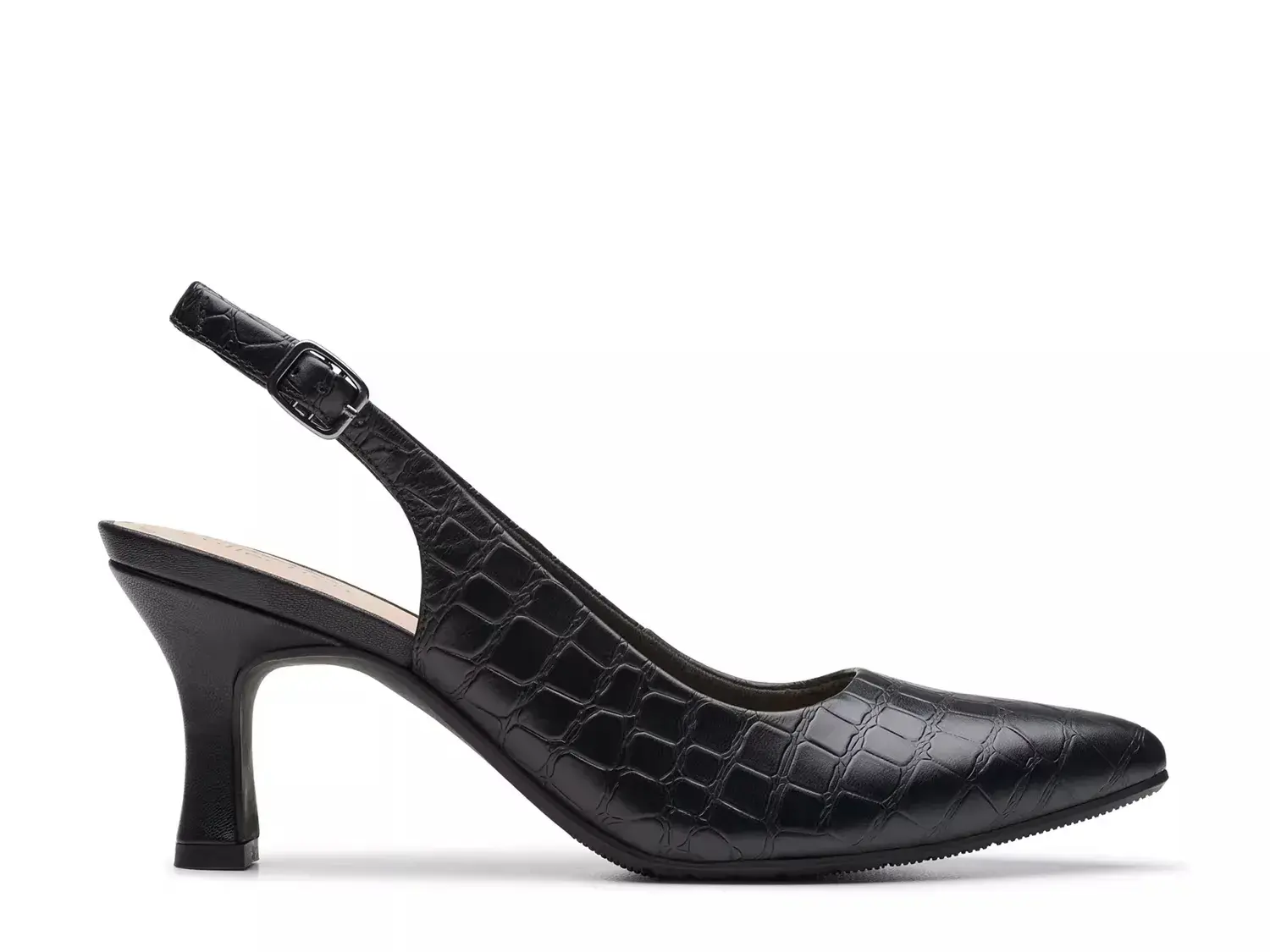 Оставайтесь утонченными и стильными в туфлях на каблуке Kataleyna Step от Clarks! Эта кожаная туфля-слингбек имеет элегантный острый нос, дополненный стелькой Ultimate Comfort для дополнительной поддержки.