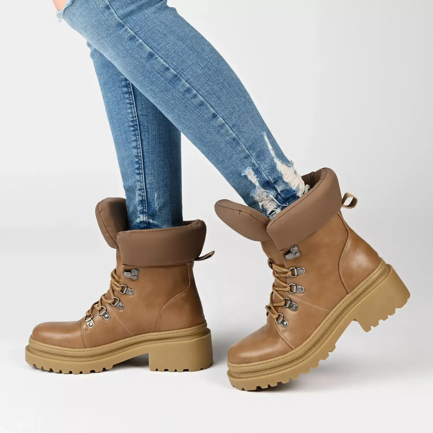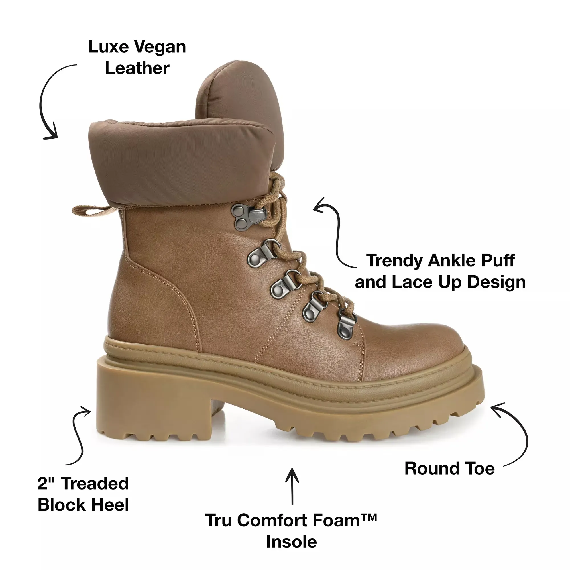 Ботильоны Journee Collection Irrah с яркой фурнитурой в виде D-образных колец, объемным щиколоткой и конструкцией из веганского синтетического материала придают спортивный стиль и комфорт с каждым шагом. Эти ботильоны на шнуровке имеют фирменную стельку из 4-мм пены Tru Comfort и протекторную подошву для отличной поддержки и сцепления как на влажных, так и на сухих поверхностях.