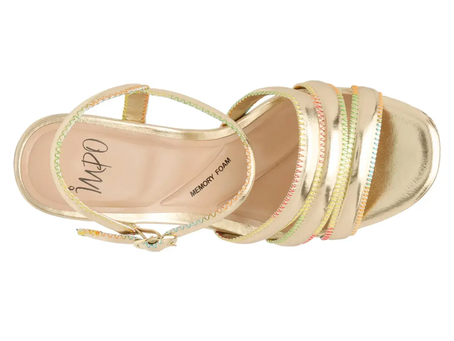 Подчеркните свой стиль с помощью платформенных сандалий Olive от Impo. Золотистый металлический верх отлично сочетается с яркой вышивкой и цветочным принтом.