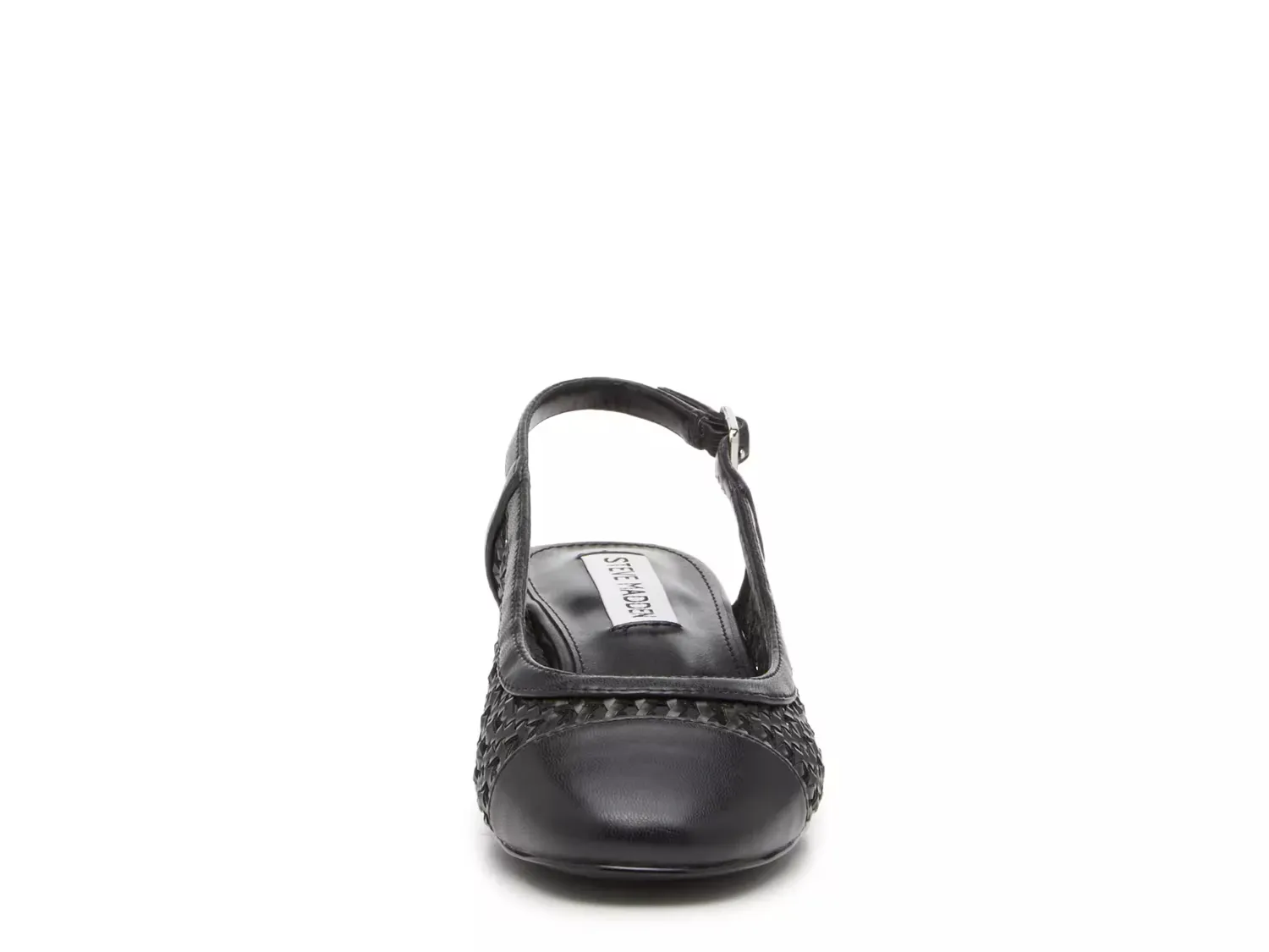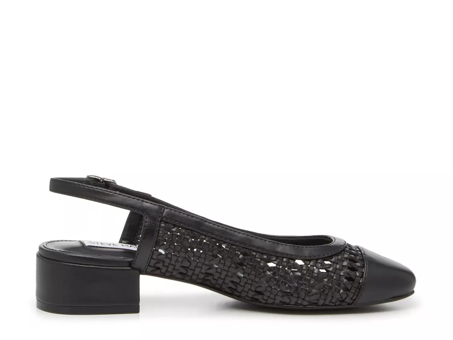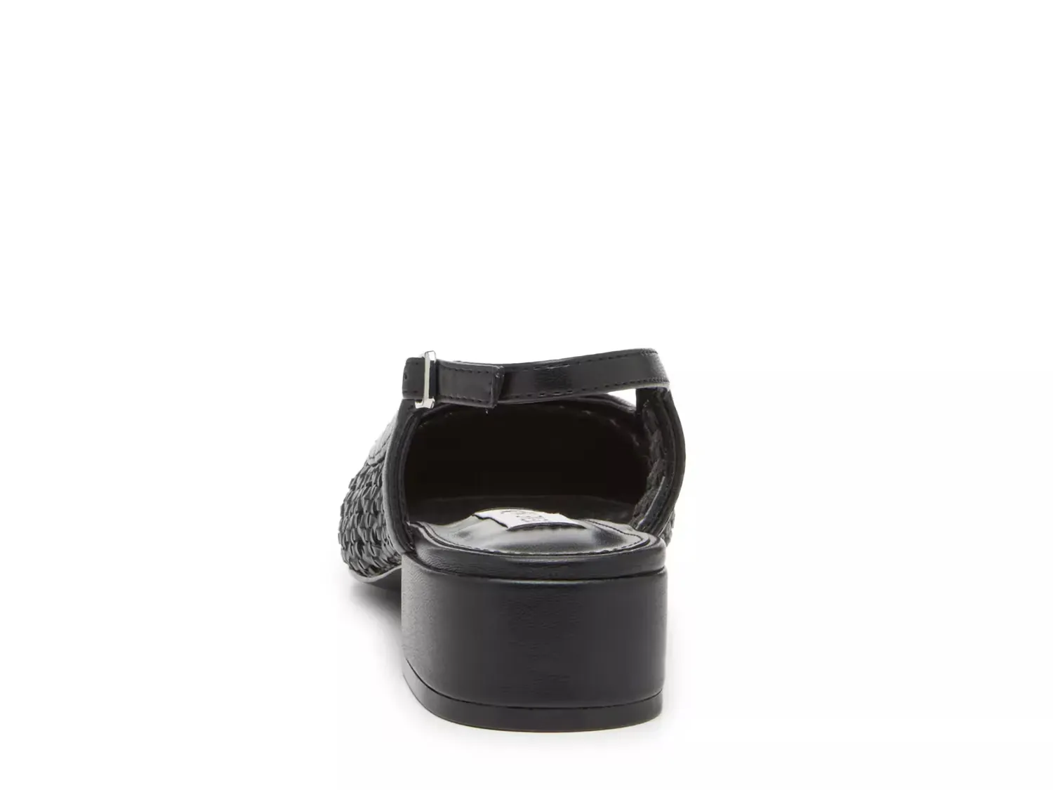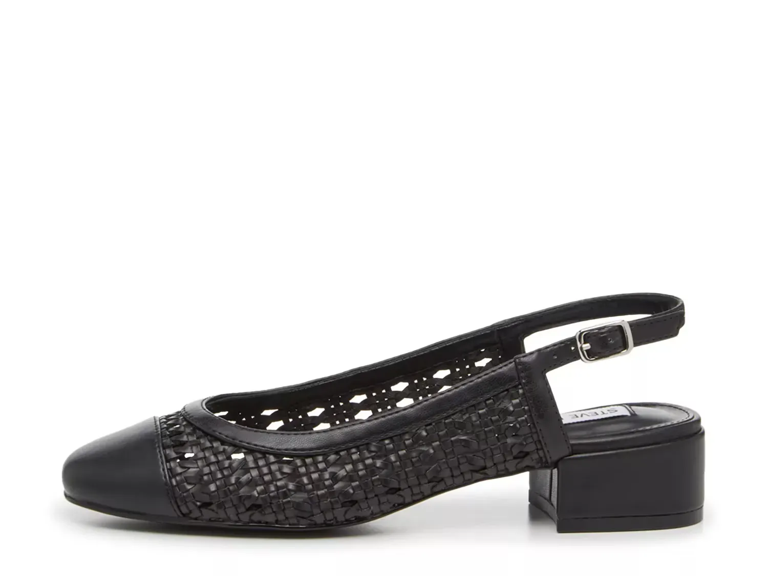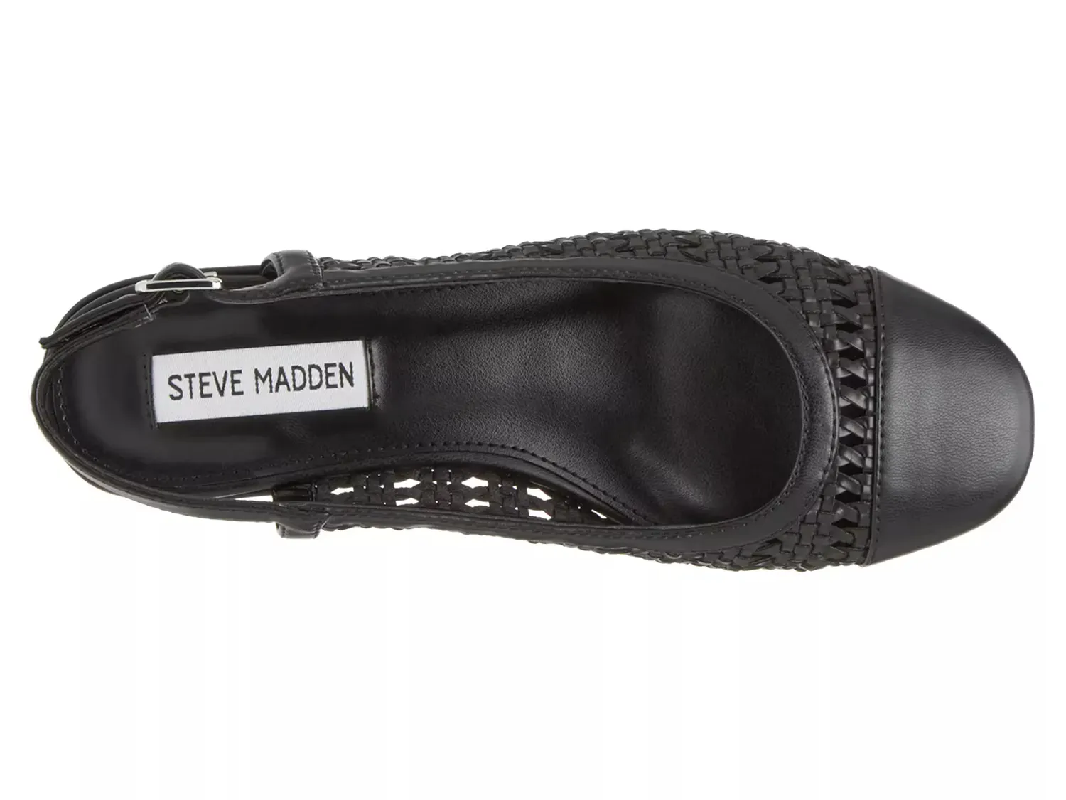 Добавьте модный штрих к классическим образам с помощью туфель Safina от Steve Madden. Этот дизайн с открытой пяткой имеет сложный плетеный верх, деталь с закругленным носком и каблук-кинжал для небольшого подъема.