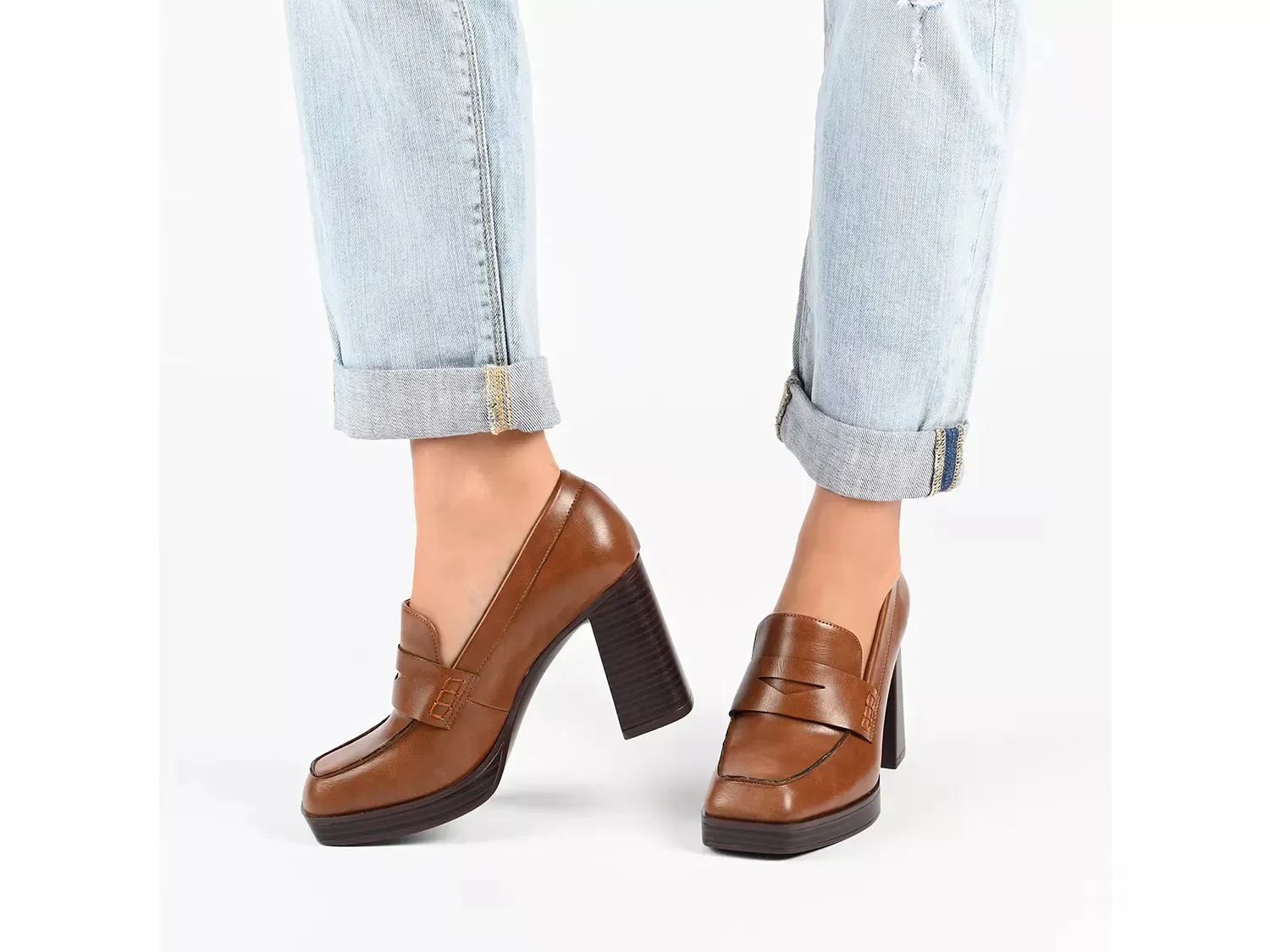 Станьте высокими и гордыми, носив платформенные туфли Ezzey от Journee Collection. Обладая высоким устойчивым каблуком, эти туфли без застежки имеют классическую деталь для монет и квадратный носок, которые отлично подходят как для официальной, так и для повседневной одежды.