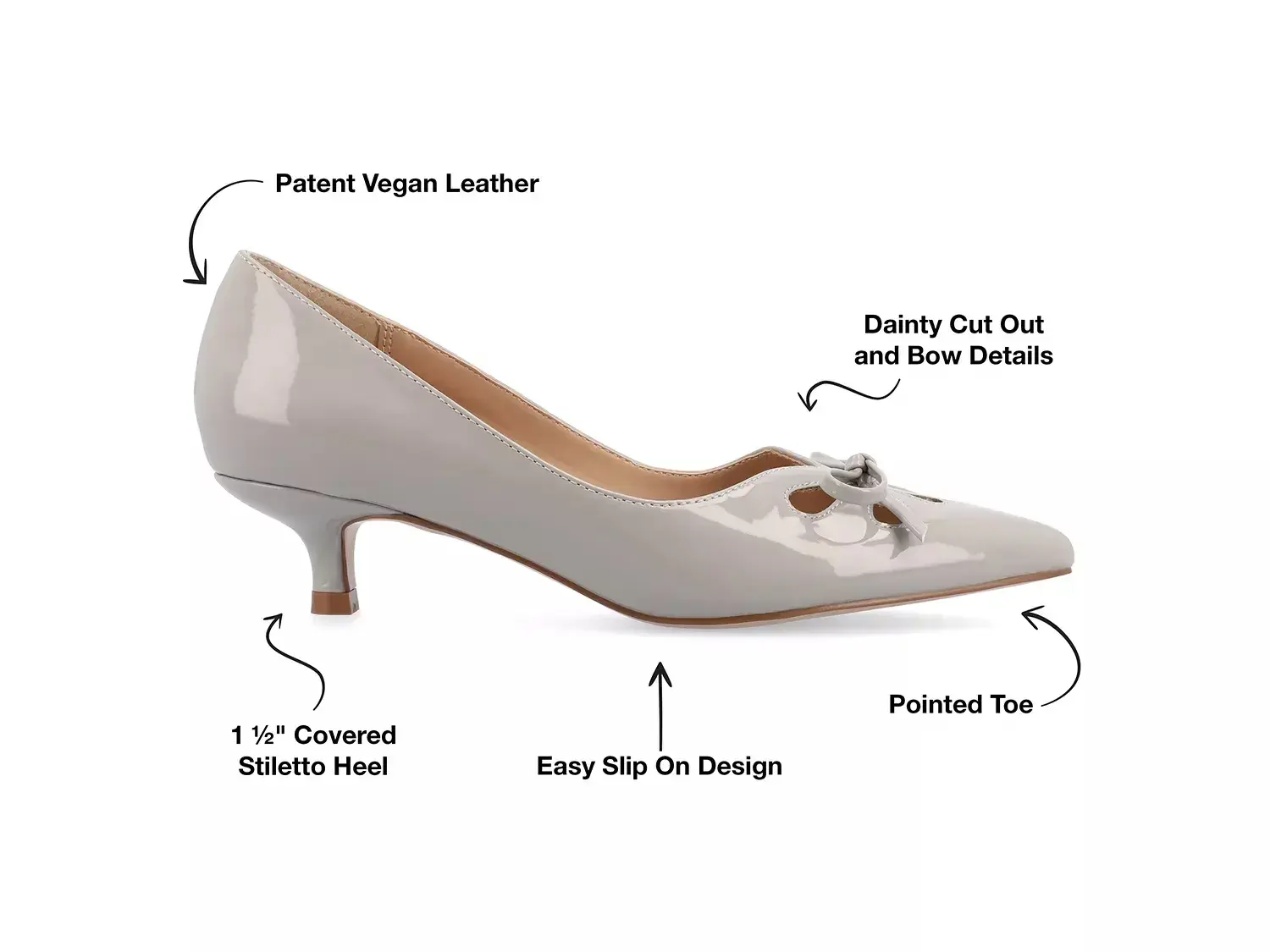 • Обтянутый 1,5-дюймовый кошачий каблук