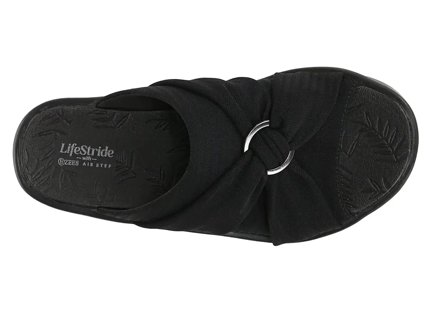 Погрузитесь в улучшенную версию простого стиля с wedges-сандалиями Serenade от LifeStride. Эта пара имеет классический слайд-силуэт, выполненный с формованным каблуком и узлом вдоль верхней части.