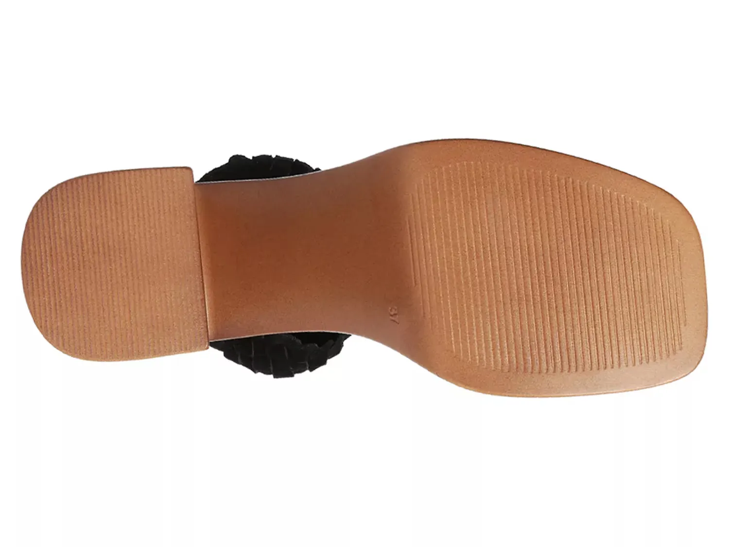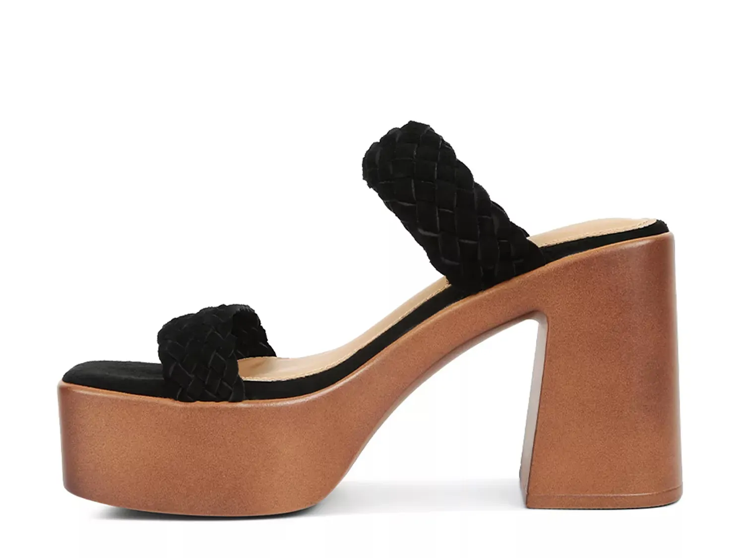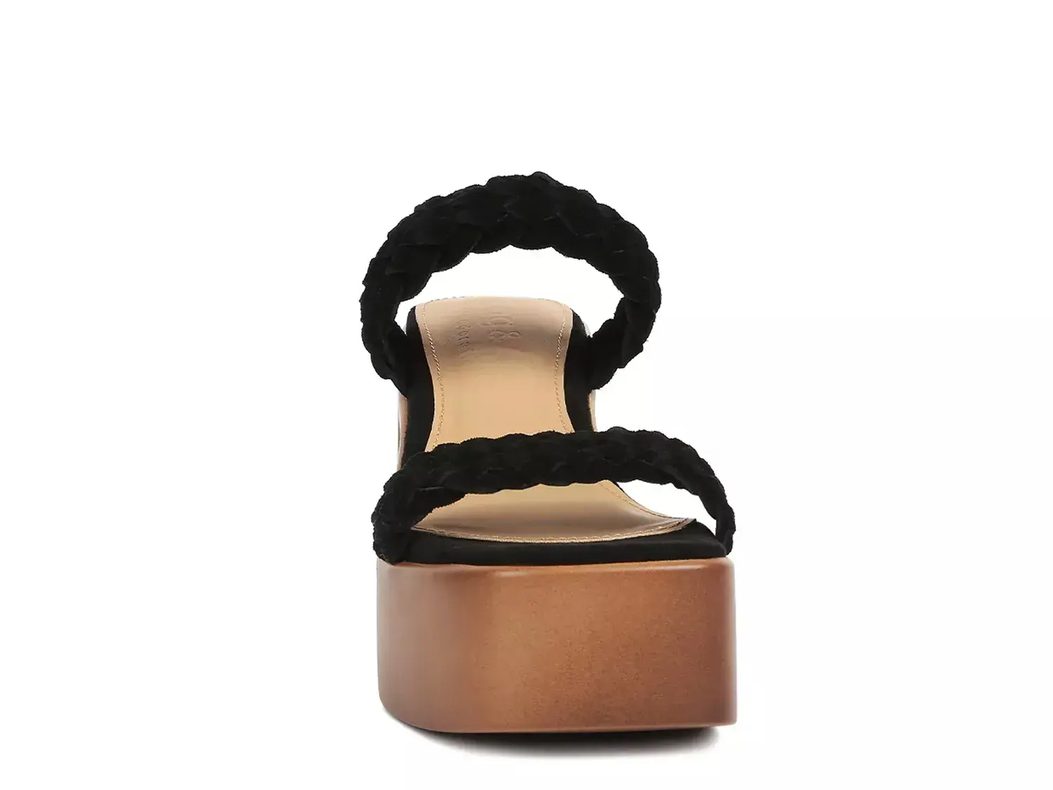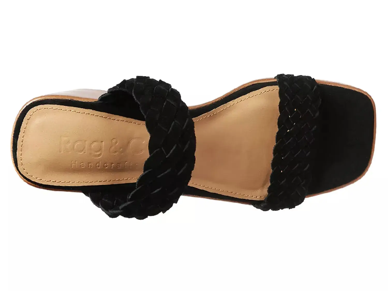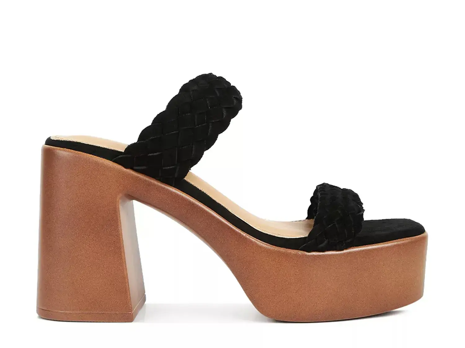 Сандалии-платформы Misaki от Rag & Co женственные и веселые. Их двойные плетеные замшевые ремешки обновляют классический слайпер с некоторым шиком и характером.