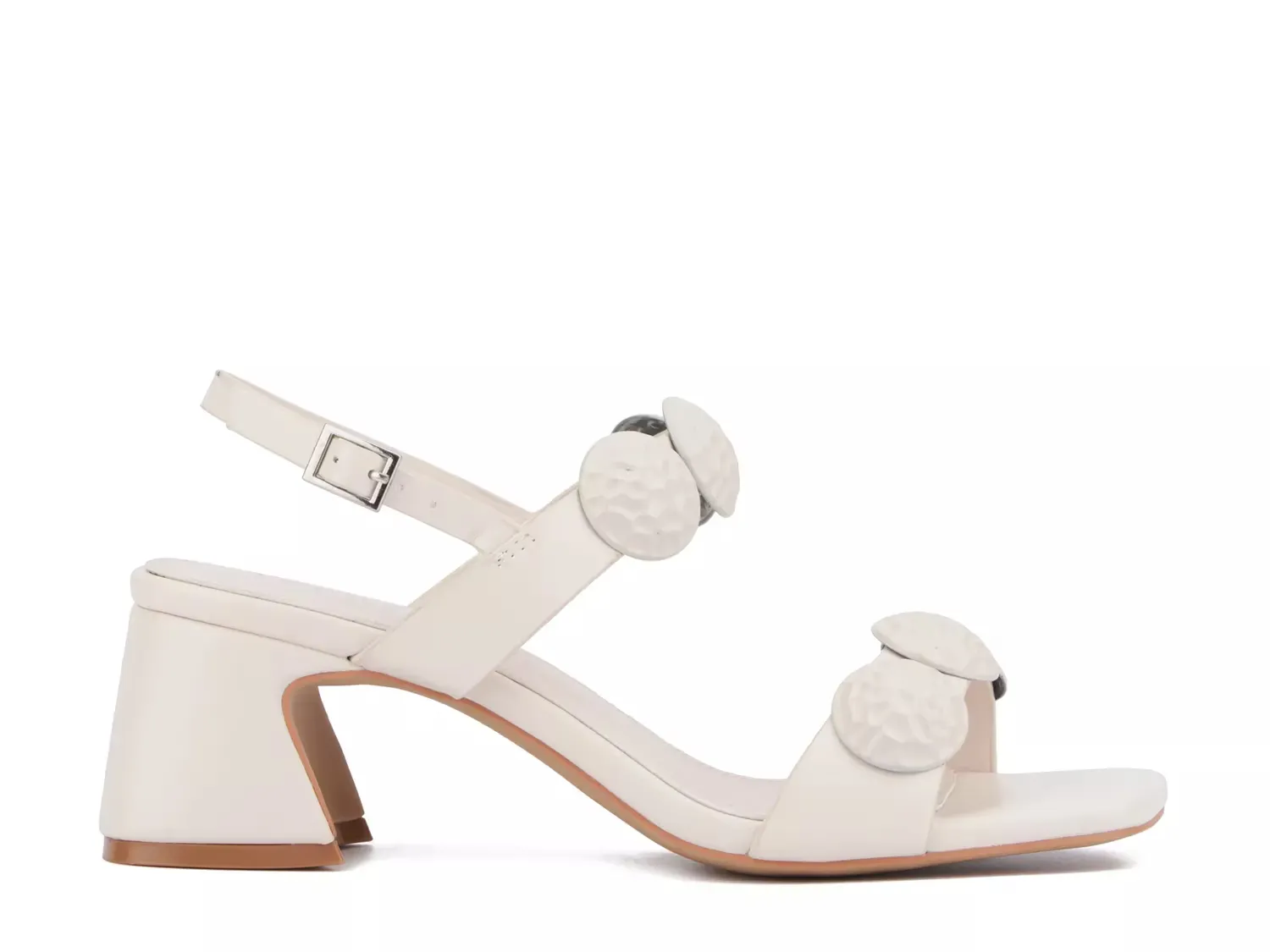 Пополните свой летний гардероб сандалиями Felicia от TORGEIS. Текстурированный медальон освежает этот сандали, а скульптурированный квадратный каблук поднимает настроение.