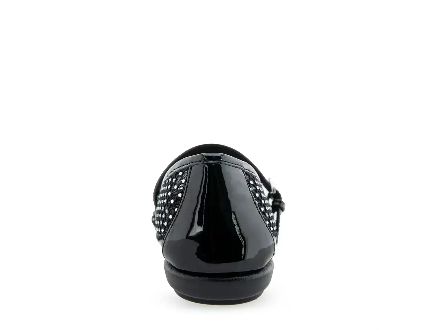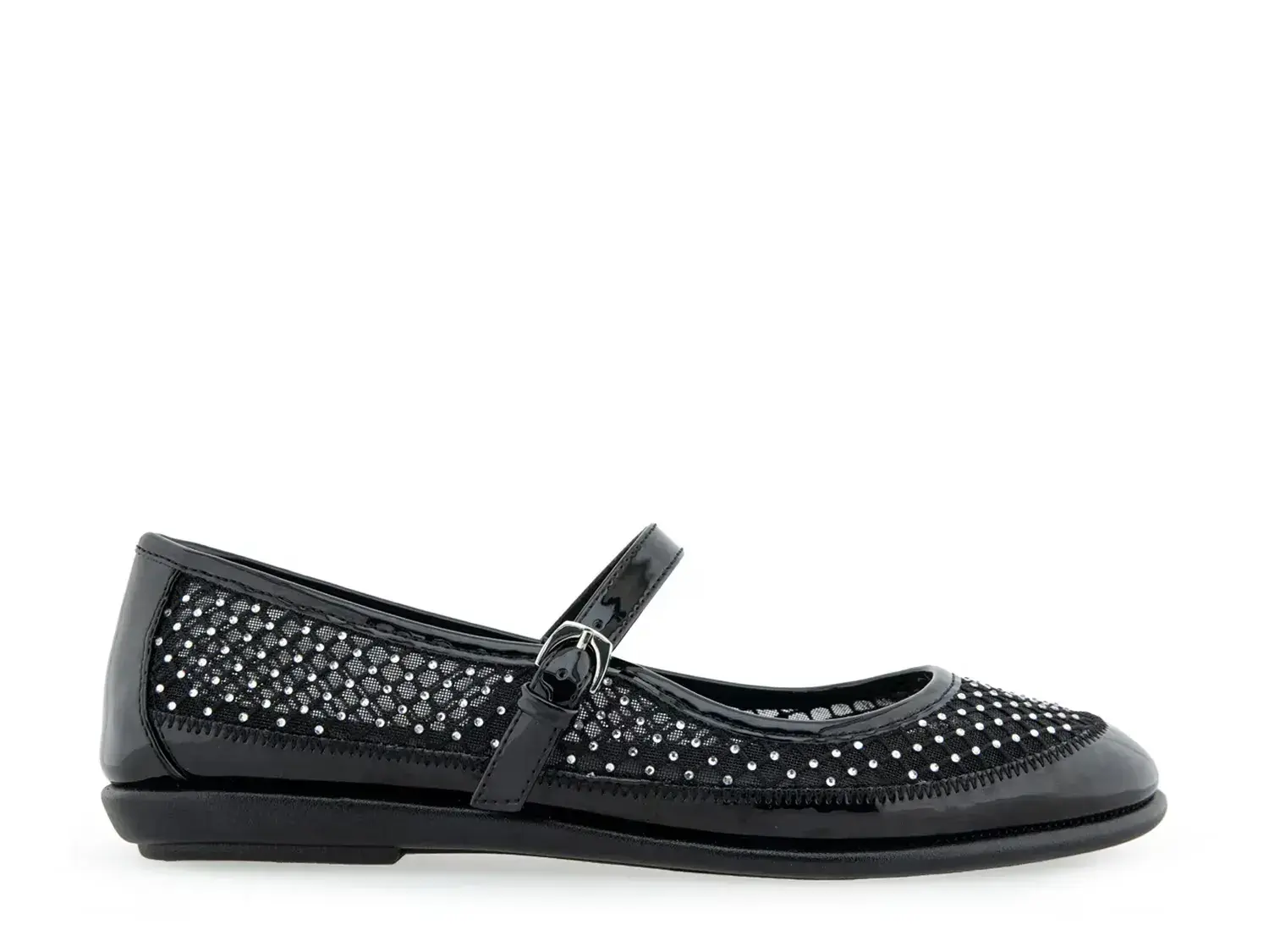 • Сетчатая ткань, покрытая стразами, и синтетическая лакированная верхняя часть